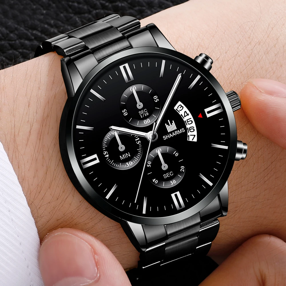 Роскошные деловые мужские часы, модные мужские часы с черным ремешком, дата, спортивные мужские часы, кварцевые часы, мужские часы 2020