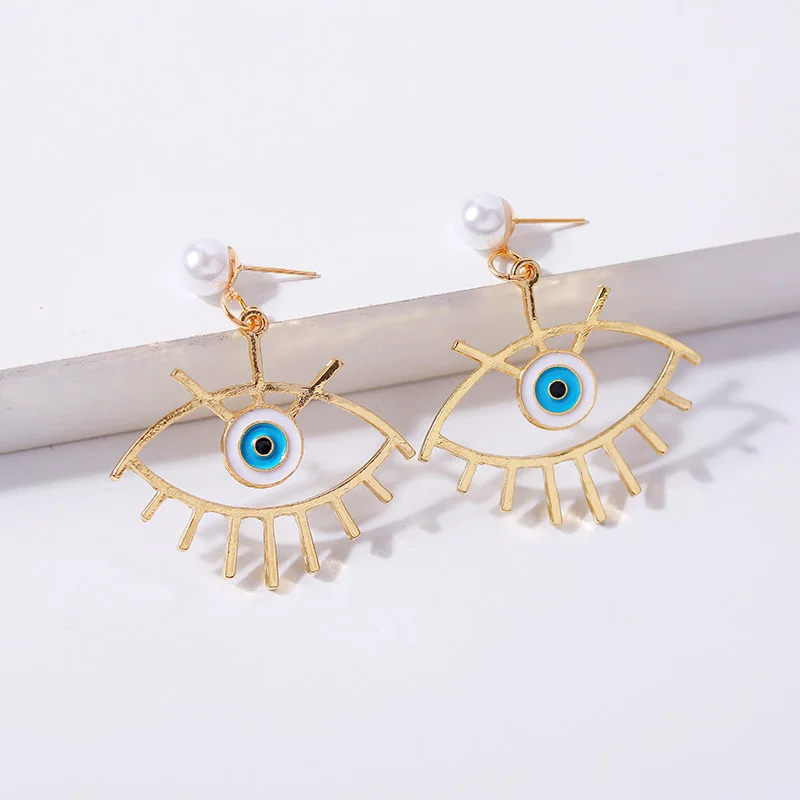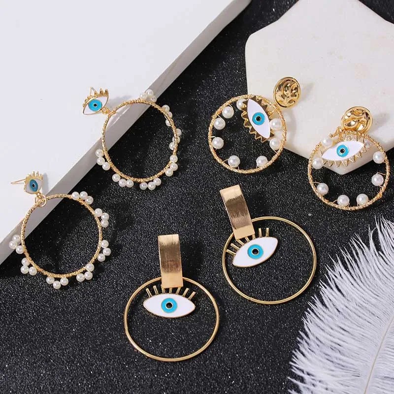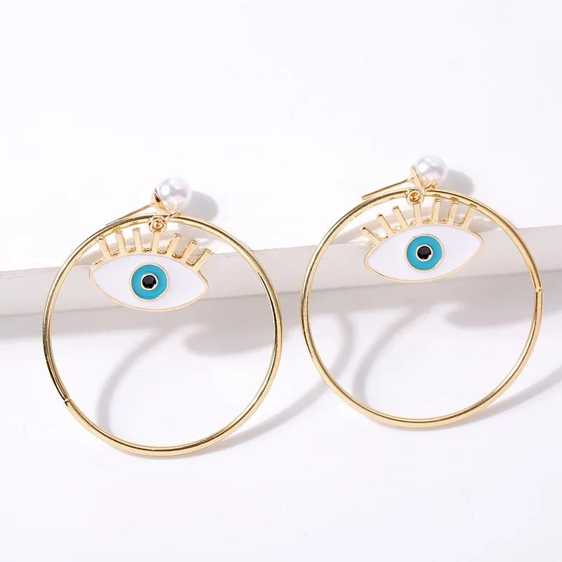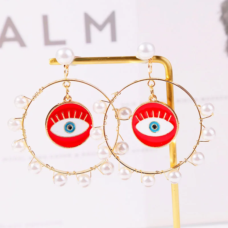 Luokey с клипсами Дурной глаз серьги для женщин в винтажном стиле; Цвета: золотистый, Цвет панковские серьги-кольца с жемчугом преувеличенные большие серьги длинные серьги ювелирные изделия из жемчуга