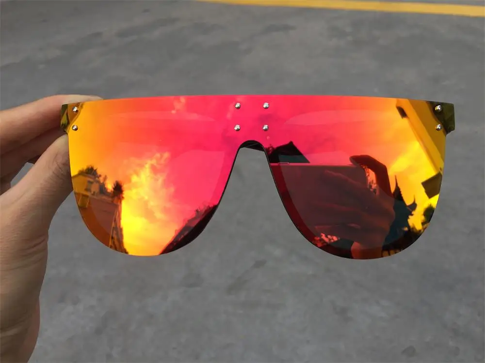 Очки солнцезащитные для мужчин и женщин UV-400, зеркальные солнечные модные роскошные дизайнерские милые привлекательные черные большие очки в красном и квадратном цвете