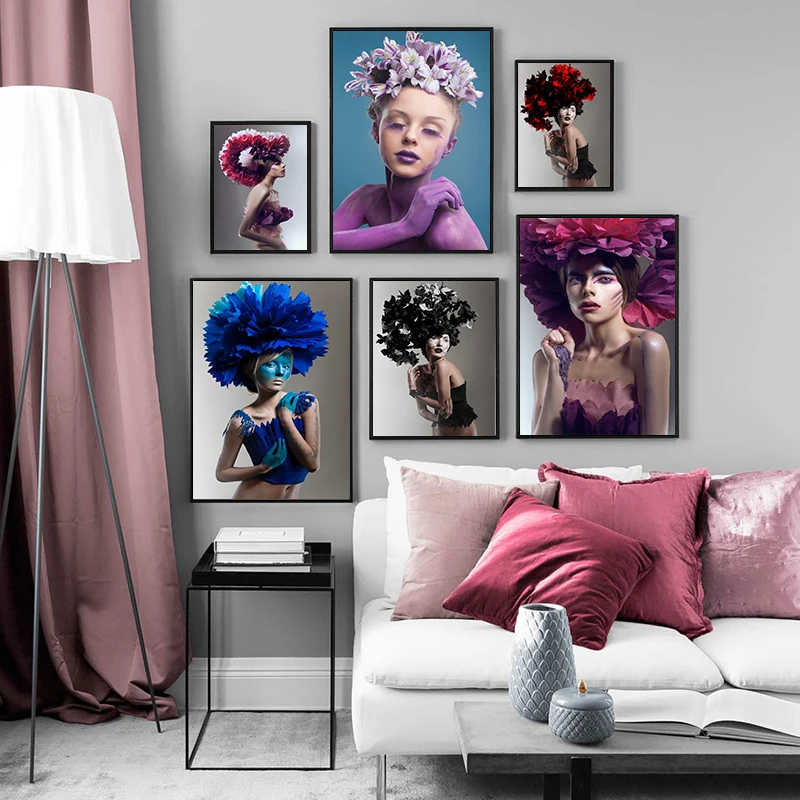 Абстрактная Картина на холсте с изображением женщины, цветов, абстрактная картина на стену, художественный плакат, Современная декоративная картина, украшение для гостиной и бара