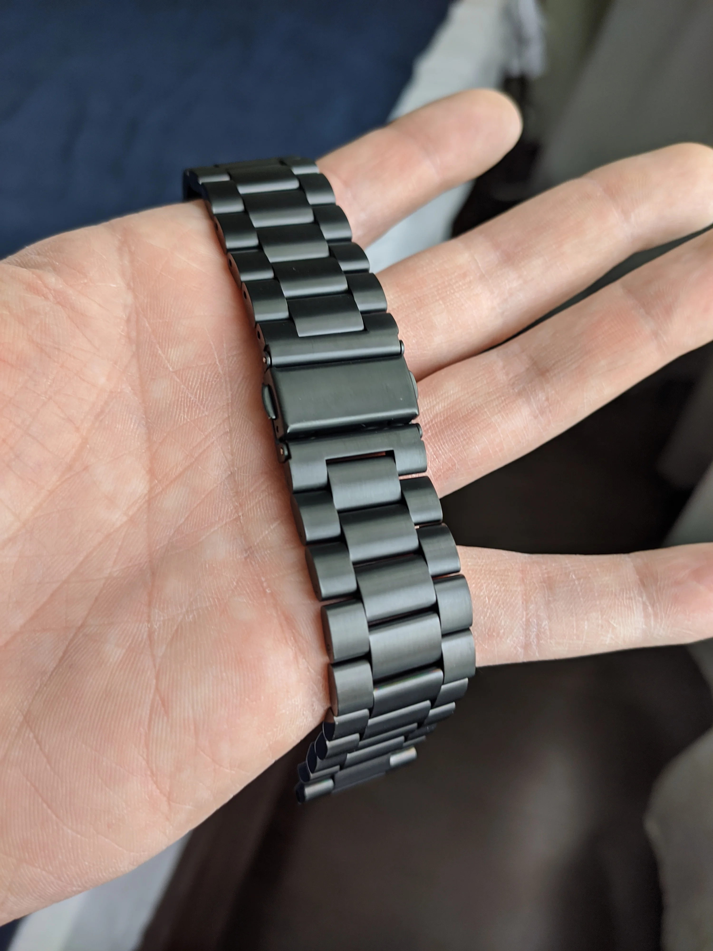 Браслет просто великолепен! На Samsung galaxy watch 3 45 mm идеально подошёл. Если корпус весь в чёрном цвете, то браслет как будто тут и был. В общем, берите, и не думайте! Всем рекомендую.