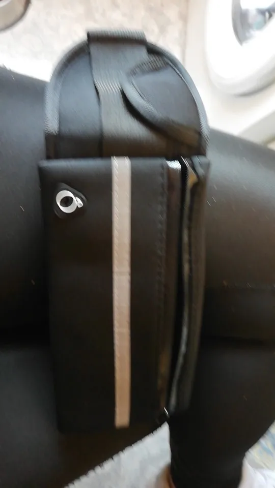 Офигенныая сумочка. Материалы, швы, всё сделано аккуратно и качественно. Есть выход для наушников. На самой сумке пришит светоотражающая полоска. Ремешок регулируется по длине и ещё тянется, вообще-то это не ремешок, а резинка. Продавца и товар рекомендую