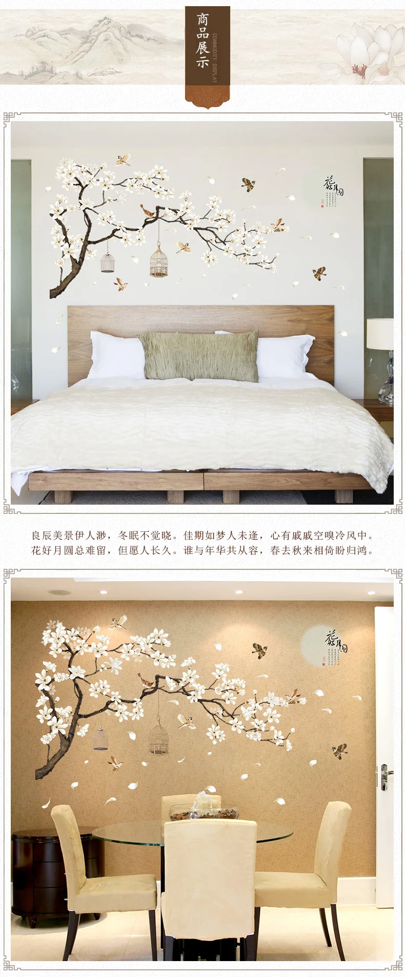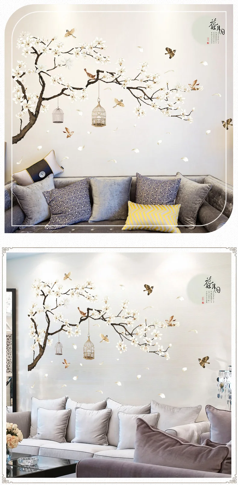 Китайский Стиль Цветы Луна птицы DIY настенные Стикеры для украшени...