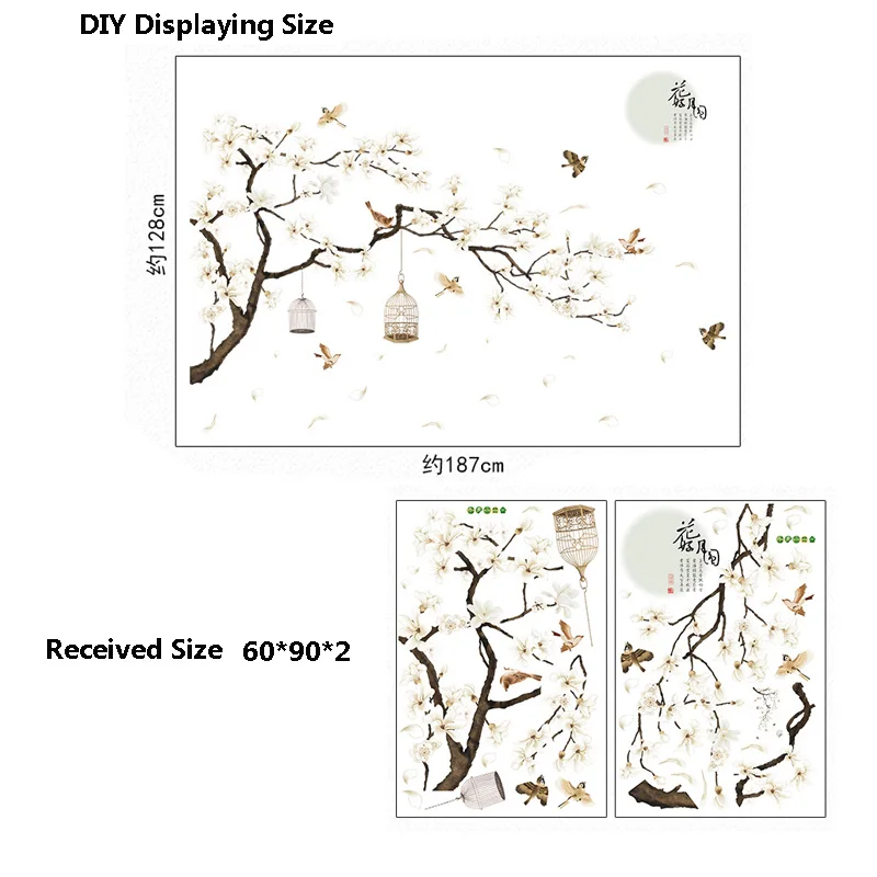 187*128 см Большой размер дерево наклейки на стену с изображением птиц цветок домашний декор обои для гостиной спальни DIY виниловые комнаты украшения