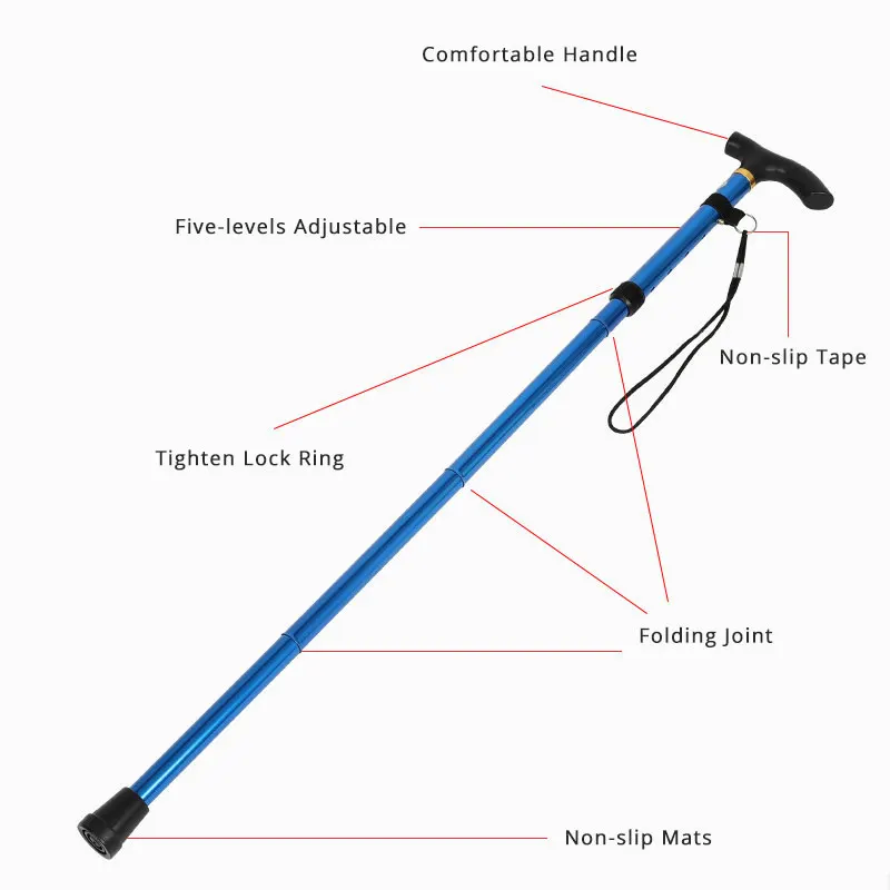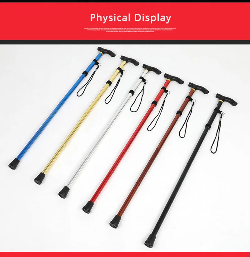 1. С телескопическими и складными функциями, этот трость удобно носить во время путешествия или прогулки. 2. Он может помочь старшему спокойно и безопасно ходить на улицу, дышать свежим воздухом, испытать красочную жизнь и наслаждаться славным временем до конца своей жизни. 3. Отличный и идеальный подарок для пожилых людей. -Материал: алюминиевый сплав + пластик + ТПР. -Размер: Телескопическая Длина 82-92 см. -5 уровней регулировки высоты: высота может быть отрегулировано легким нажатием на шарик-кнопки. Очень легкий светильник для переноски и использования.