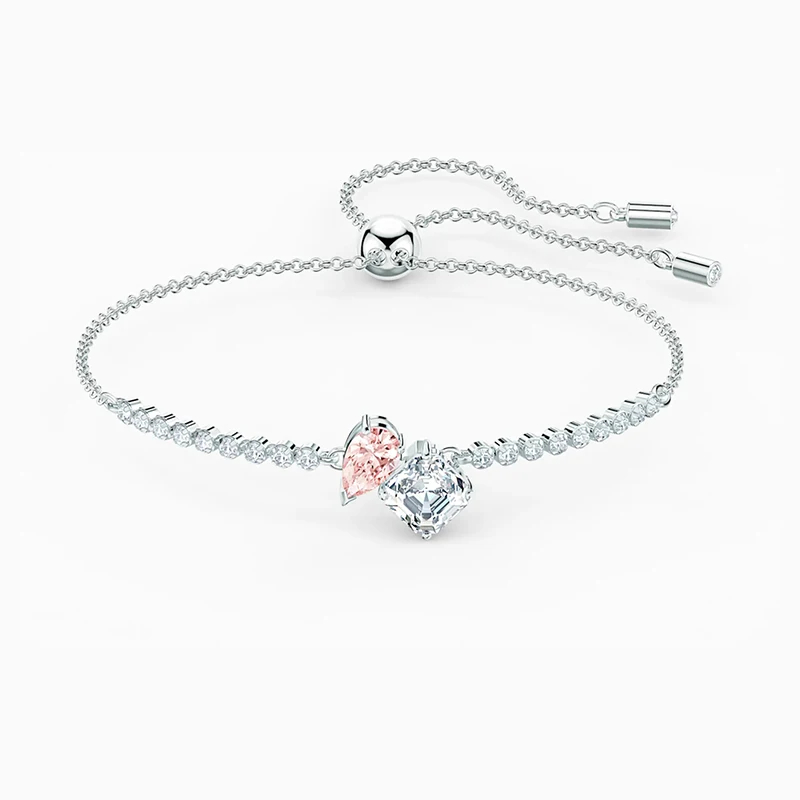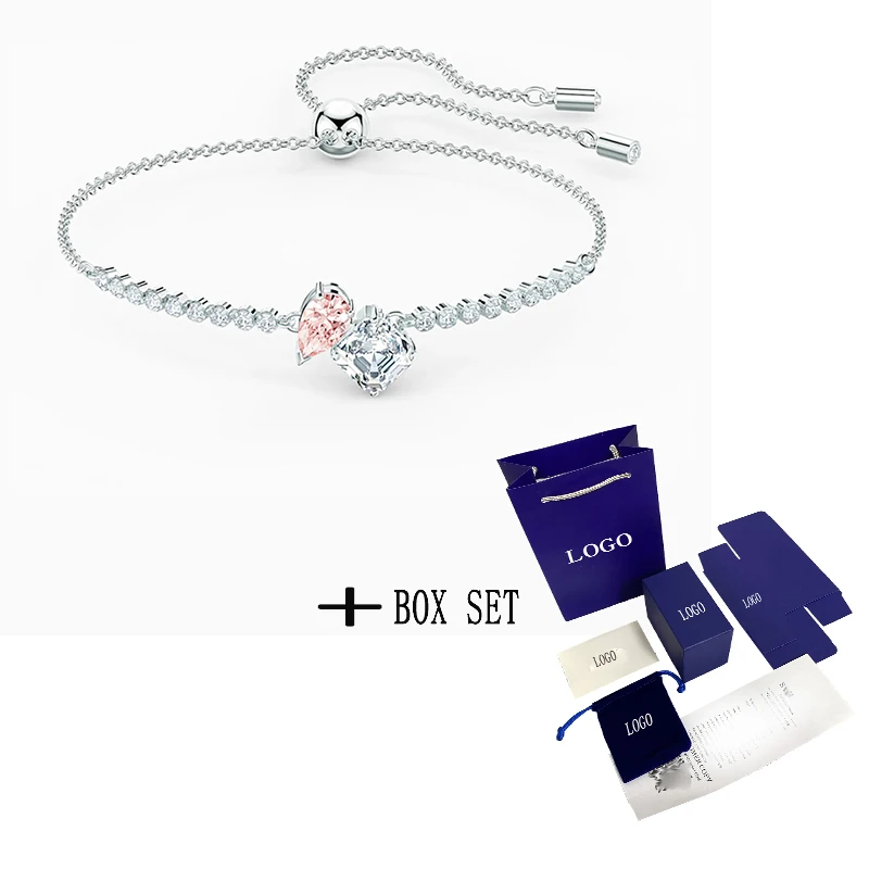 Небольшой регулируемый браслет высокого качества с белым и розовым кристаллом для женщин.