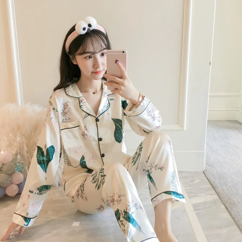 Пижама женская, Кардиган с длинным Шелковая пижама с рукавами