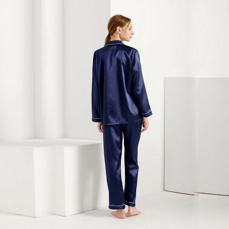 Женская шелковая атласная пижама NEWDISCVRY, пижамный комплект с длинным рукавом, одежда для сна, Пижама, Пижамный костюм, женский комплект для сна из двух предметов, домашняя одежда