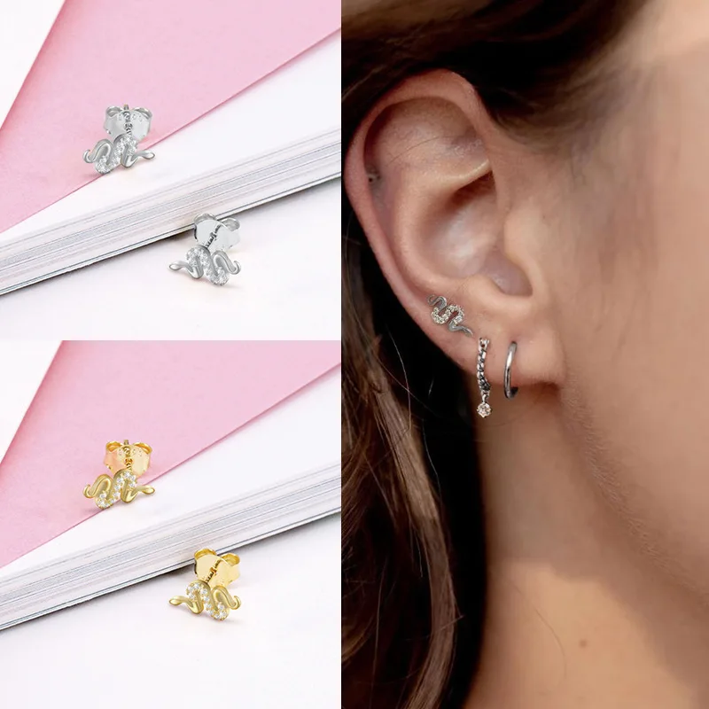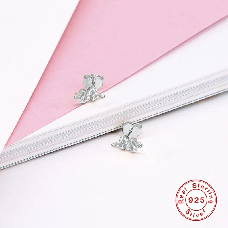 Женское ювелирное изделие WANTME, из 100% серебра 925 пробы с паве из белого циркония, серьги-гвоздики в виде змеи