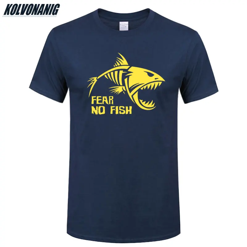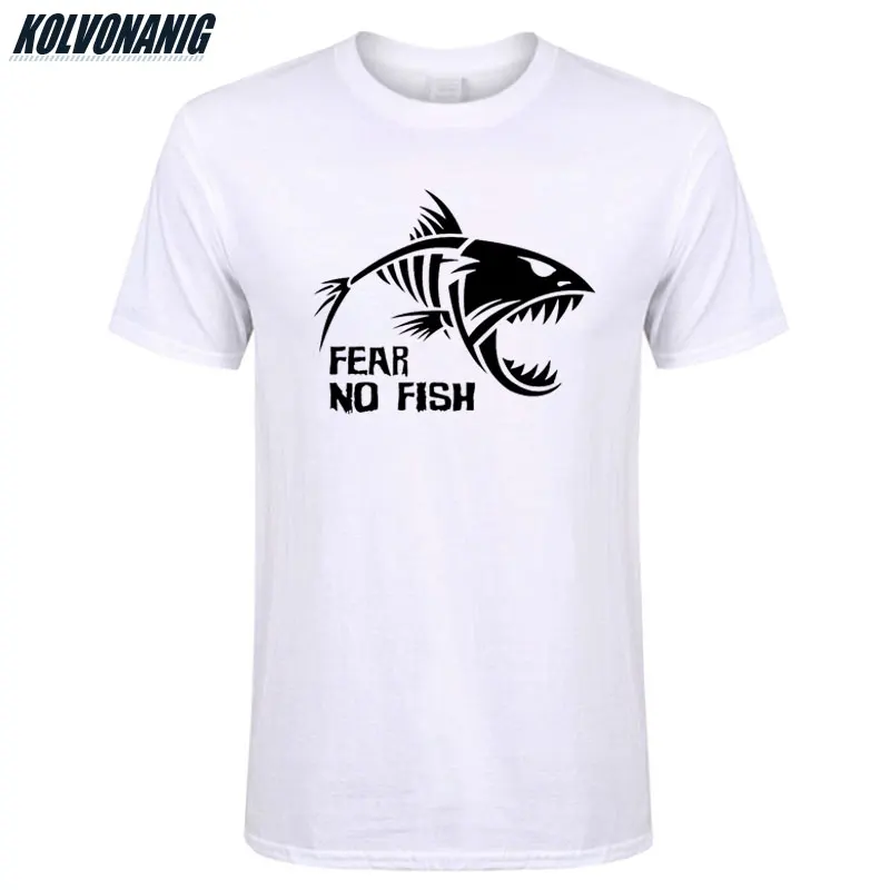 Мужская хлопковая футболка, с круглым вырезом и коротким рукавом, с принтом "страх нет рыбы", повседневная, лето 2021, размера плюс