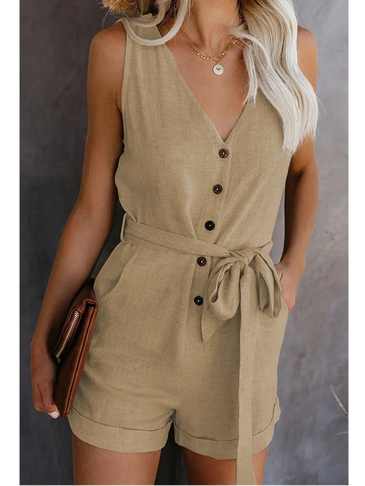 Комбинезон женский летний, с V-образным вырезом, без рукавов, на пу...