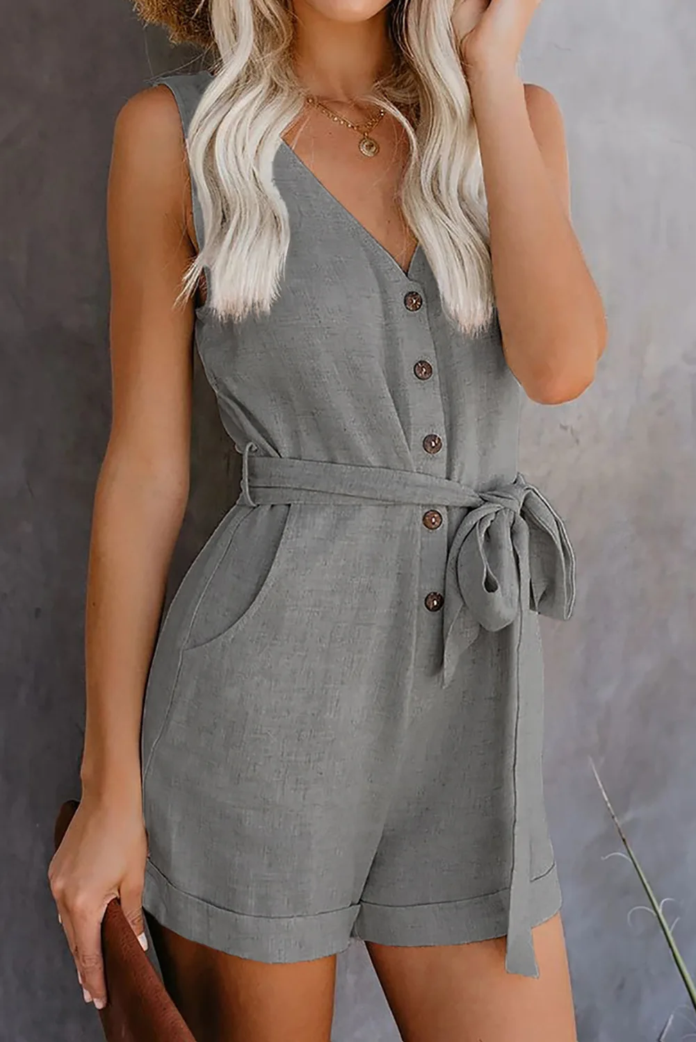 Женский комбинезон без рукавов, повседневный комбинезон на пуговицах в стиле ретро, Модный комбинезон со средней талией и поясом, женские шорты с бантом, лето 2020