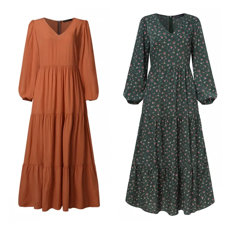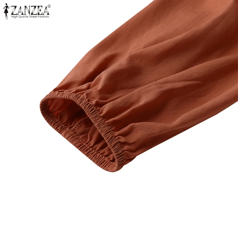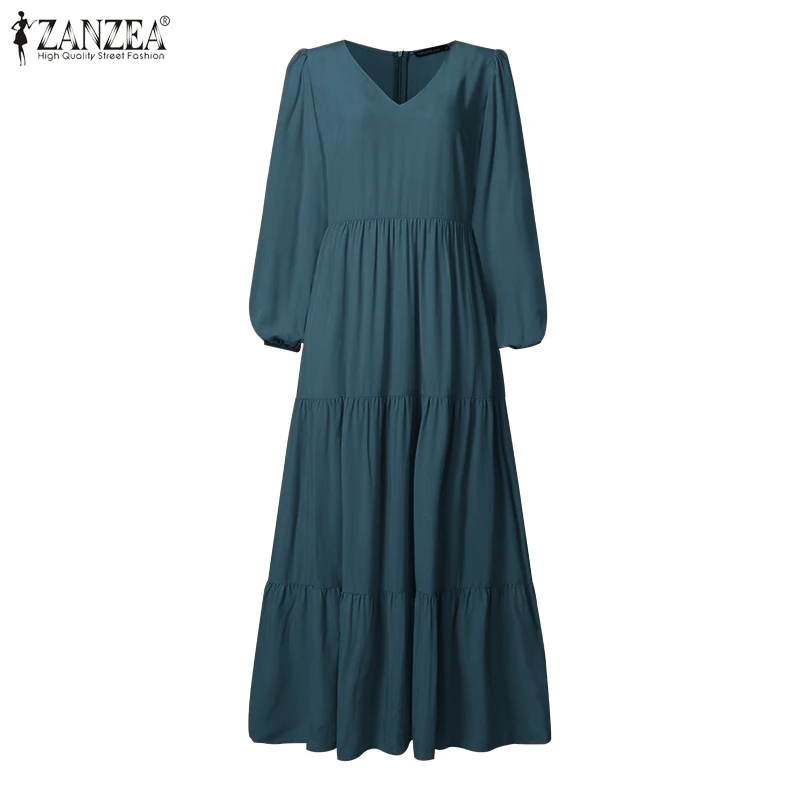 ZANZEA 2021 стильное платье-макси с рюшами, Повседневная Туника с пышными рукавами, женское однотонное платье, Женский Осенний Сарафан