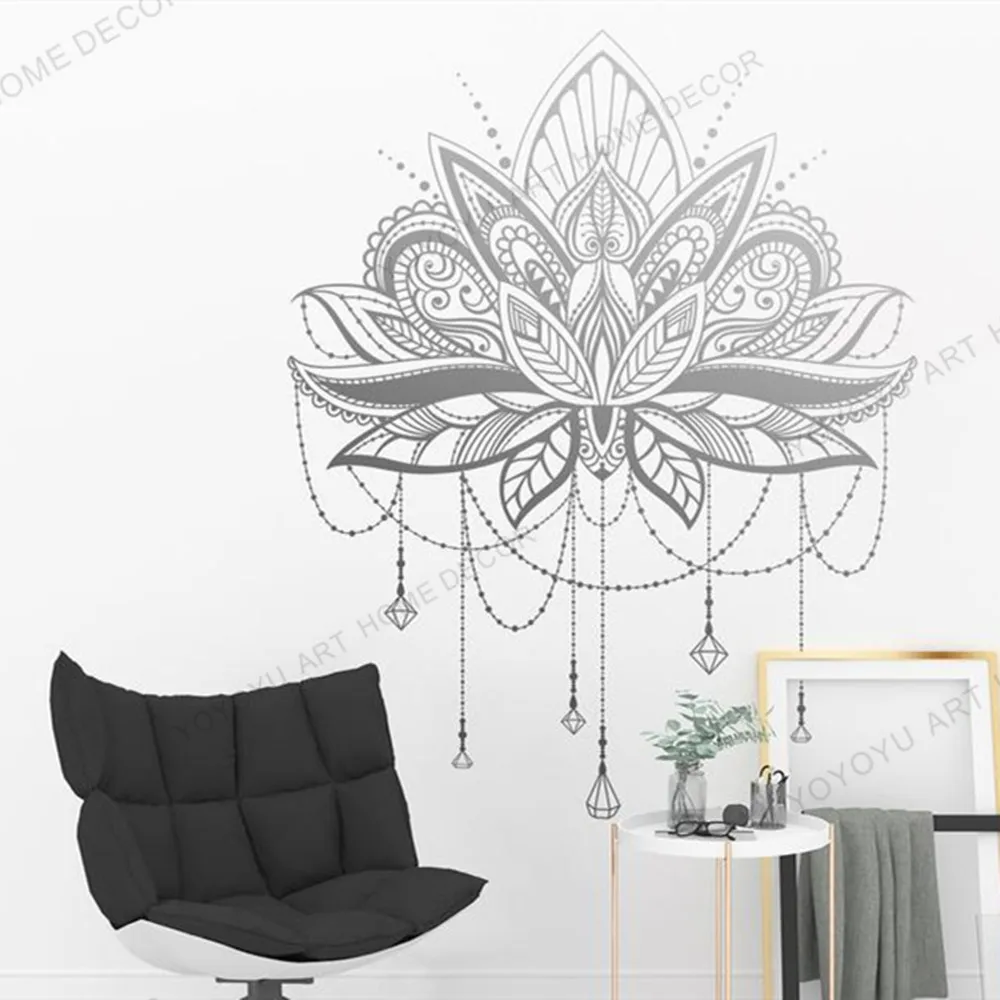 Виниловые наклейки на стену с рисунком мандалы лотоса, украшение дл...