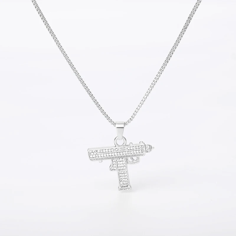 Ожерелье из циркония для мужчин и женщин, ювелирное изделие в стиле хип-хоп с кулоном в форме пистолета-автомата, с подвеской в форме пистолета УЗИ, Золотая Шкатулка