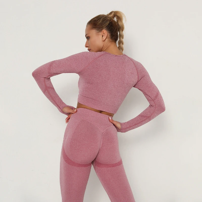 Костюм спортивный женский, бесшовный, с длинным рукавом и леггинсами с высокой талией