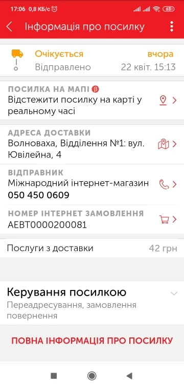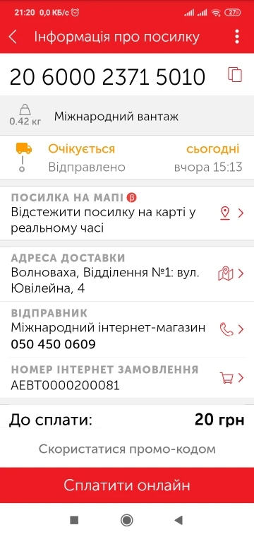 очень долго не отправляли мотивируя это тем что проходят порт закрыт из-за прохождения фестивалей. доставка месяц. из минусов, то что за доставку пришлось заплатить. заказ направили новой-почтой, для меня это было неожиданно, т.к. этой службы у нас по близости нет. дополнительно пришлось потратить на дорогу 80 грн. и +20 грн. услуга доставки новой почты.