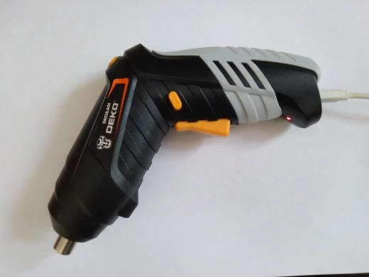 Купил за 700р. В целом доволен. Мощный, дешёвый и компактный. Есть несколько вещей, которые стоит знать перед покупкой. Естественно, не регулируется момент затяжки. Поэтому, чтобы не сорвать шлицы у самореза или резьбу в материале необходимо в нужный момент сбросить усилие путем поворота руки против вращения, так как у мотора присутствует инерция после отпускания курка. Светодиод загорается одновременно с работой мотора, что не позволяет сначала подсветить место работы, а потом начать закручивать. Переключатель реверса не очень удобно расположен - при закручивании постоянно нечаянно на него нажимаешь и включается обратный ход. При снижении заряда батареи падает скорость, но крутящий момент остаётся. Нет индикации, что зарядка окончена. Мой экземпляр очень сильно шумел, чувствовалось, что закусываются шестерни. Пришлось разобрать редуктор, попереставлять шестерни местами и напихать смазки, и теперь работает гладко.