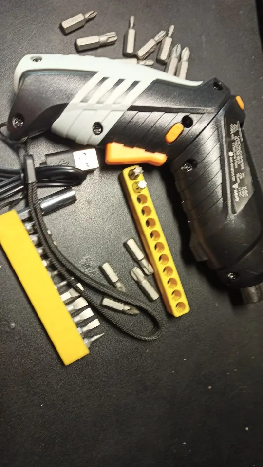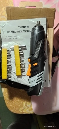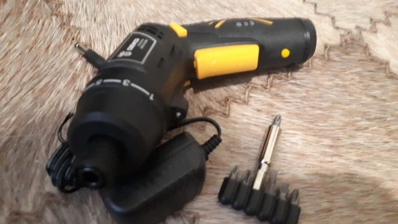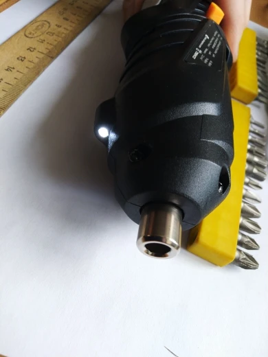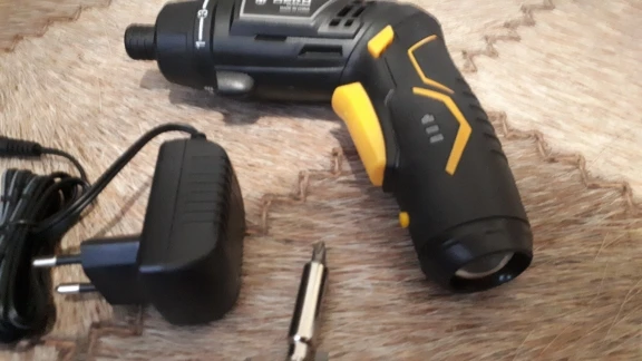 Заказал 11.11 в комплектации с битами за 673 рубля. Собрана отвёртка хорошо, рукоять обрезинена. Магнит в патроне нормальный. Единственное, в ней гремит батарейка, если потрясти. Биты нечто среднее, не совсем пластилин. Своих денег (до 1000 ) она стоит. Закручивал ей 35 саморез, справилась успешно. На канале Ящик с инструментом её подробно тестили и разбирали (редуктор пластик, кроме ведущей шестерни)