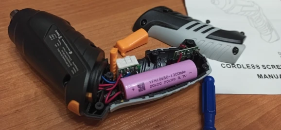 Доставка в течении 5 дней до Омска. Обзоров на эту отвертку уже много, но добавлю от себя: Отвёртка сама по себе достаточно мощная, (но мощность ее не получится использовать), под нагрузкой очень шумная, пластик дешевый, рукоятка прорезиненная. Теперь о неприятном: шестерни в редукторе пластмассовые, с рядом ближе к бите - проблем нет, а вот шестерни, которые ближе к мотору не полноценно прилегают к планетарной шестерни, они прижавшись к одной стороне, проскакивают у планетарной шестерни (на фото видно), причем это конструктивная особенность. Редуктор под нагрузкой трещит - шестерни проскакивают, и с каждым использованием всё сильнее и сильнее, Работать практически невозможно. Работал ей пару раз, собрал комод и тумбу. Через пару недель решил повесить полку - 16мм саморез в дсп - уже не может загнать - проскакивает редуктор Одноразовая отвертка. Качество редуктора отвратительное. Не рекомендую.
