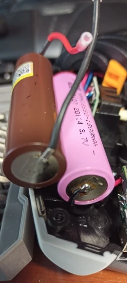 С битами за 523. Взял для работы под потолком 4 метра. Меня всё устраивает. В этой чисто гаражной сборке умиляет не столько кривые бумажные лэйблы, сколько пайка в АКБ. В официальных магазинах Литакалы продают HG2 c уже приваренными AWG20, я брал за 67р с купонами, итого обойдется в 600₽. Заменю и решу проблему второго АКБ. Можно обойтись без паяльника - зачистка и скрутка, термоусадка с припоем. Шнурок для руки ставится элементарно. Для техники буду пользоваться битами из набора NANCH. На посл. фото пародия из набора и нормальная бита Т30.