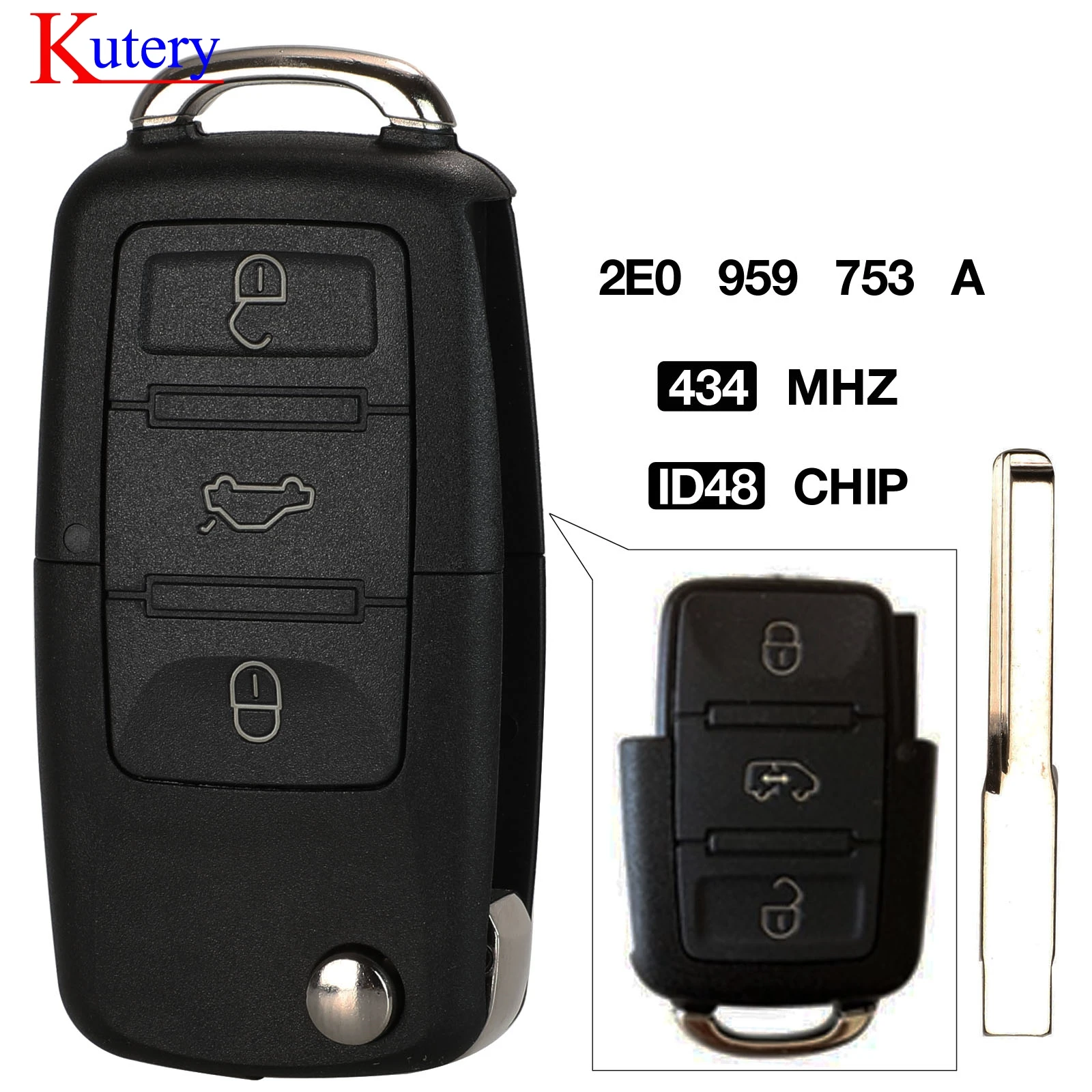 Kutery Модернизированный Складной Дистанционный брелок 3 кнопки 434 МГц ID48 чип hu64 лезвие для vw Volkswagen Crafter 2E0 959 753 A