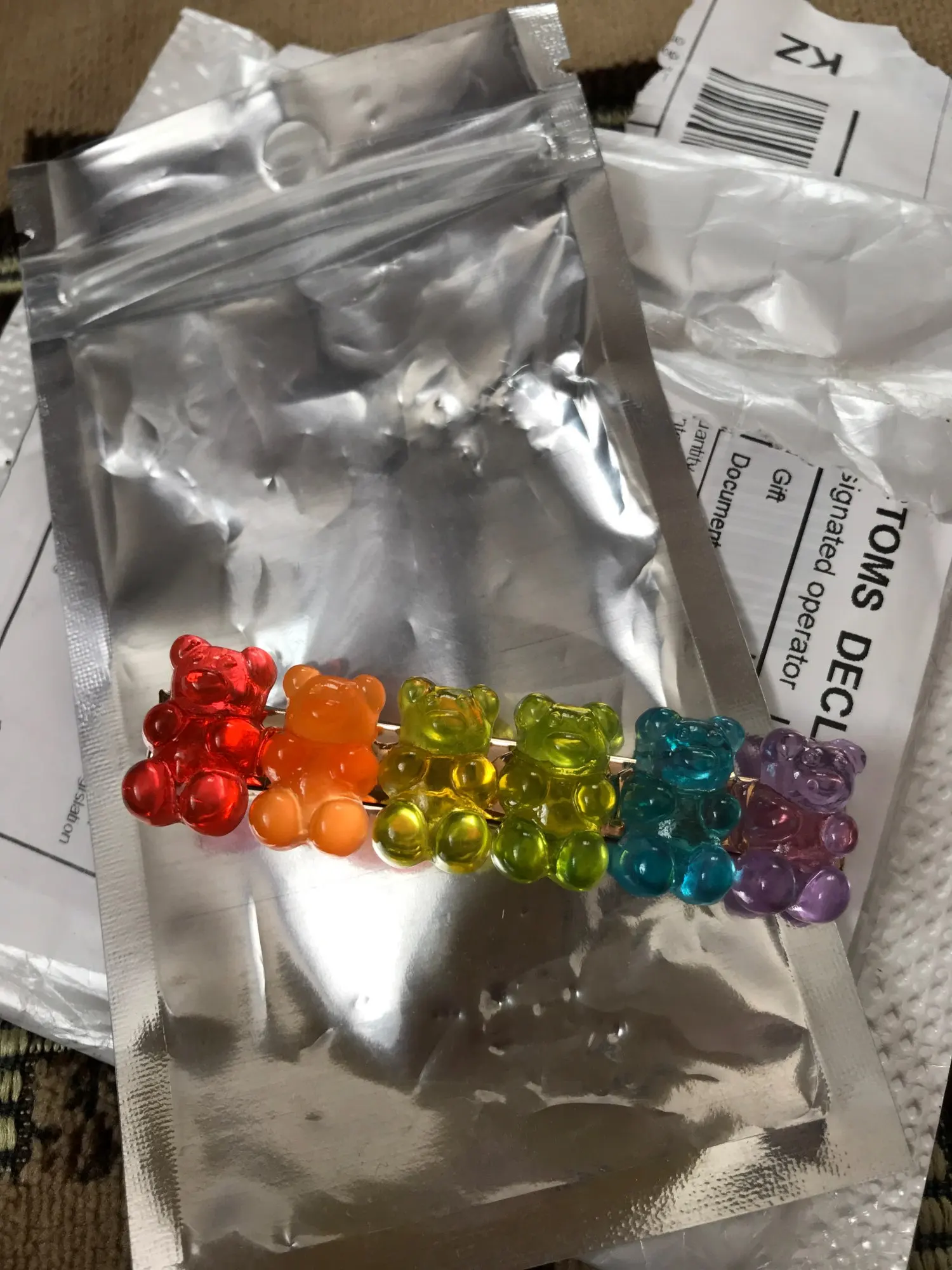 Доставка 14 дней. Они очень классные!!! Заказывала две, пока писала отзыв одну забесили дети))) младший пробовал их лизать))) очень реалистичные. Похожи на мишек харибо. Что бы спокойно написать отзыв, пришлось отдать все мармеладки харибо))) Зажим действительно крепкий. Хорошо держит даже густые волосы. Мишки приклеены на совесть, торчащего клея не видно, аккуратная работа. Упаковано было в пупырку, дошло все в целости. Заказом очень довольна, как потеряем... а мы потеряем)))буду заказывать еще именно в этом магазине т. к. к качеству не придерешься и доставка быстрая еще и отправили сразу. Спасибо, очень приятно иметь дело с такими магазинами.