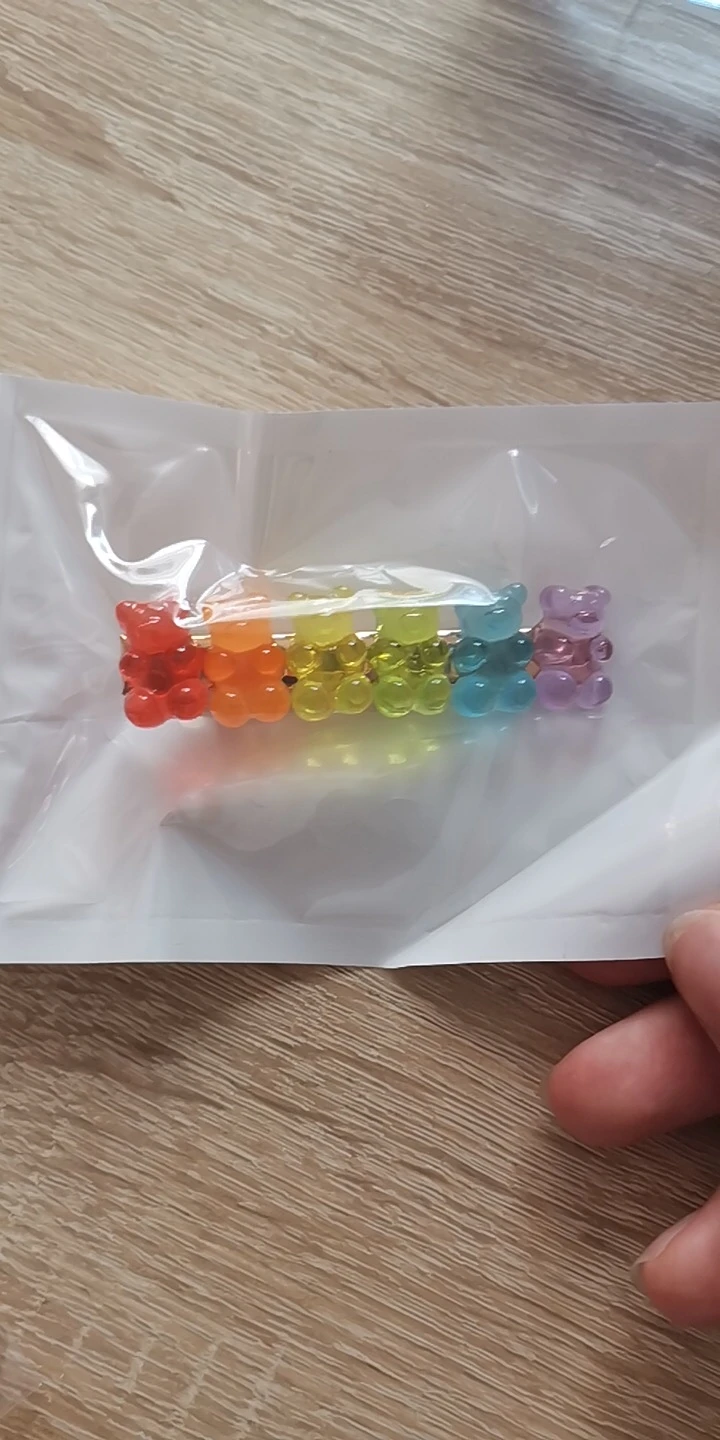Очень большой зажим, так что трудно выглядеть правильно, упаковка пришла порвана и поэтому жевательные медведи были поцарапаны