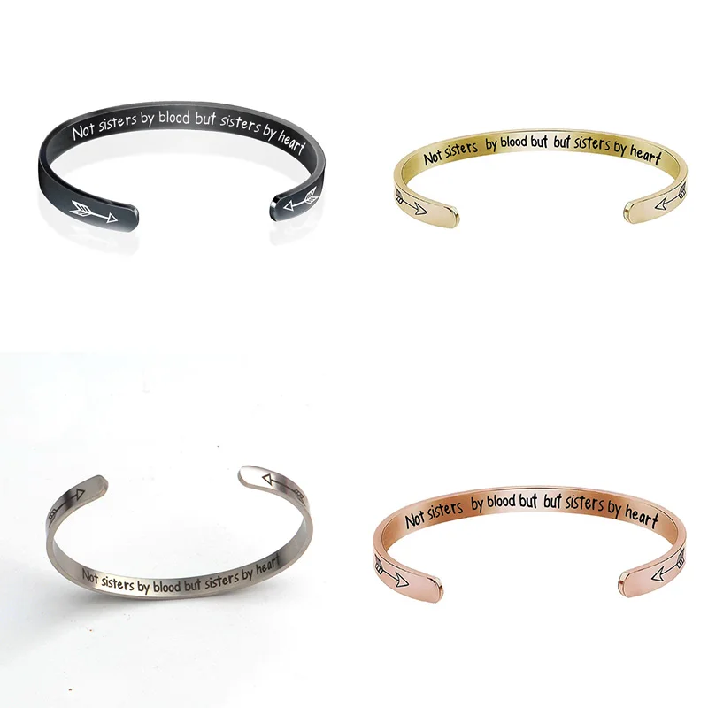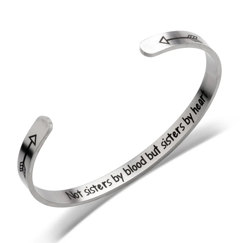Браслеты-манжеты из нержавеющей стали, Браслет не сестры по крови, а сестры по сердцу, браслет для подруги