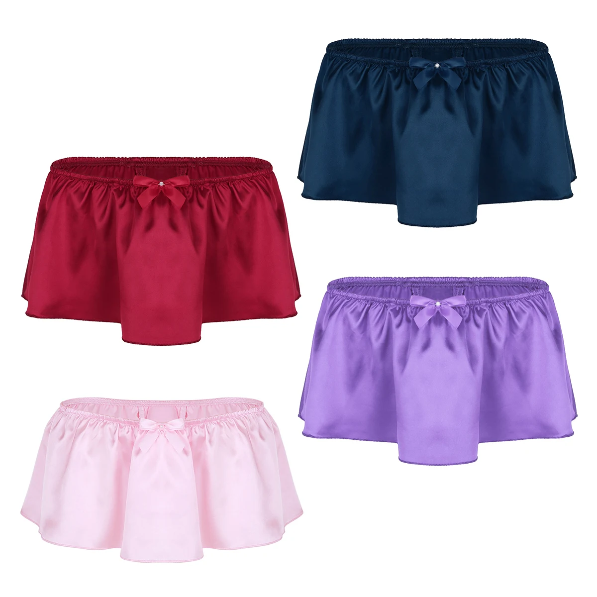 Sissy Мужское нижнее белье, сексуальные гей трусы для мужчин, блестящие атласные трусы с бантом, стринги, мужское нижнее белье, трусы