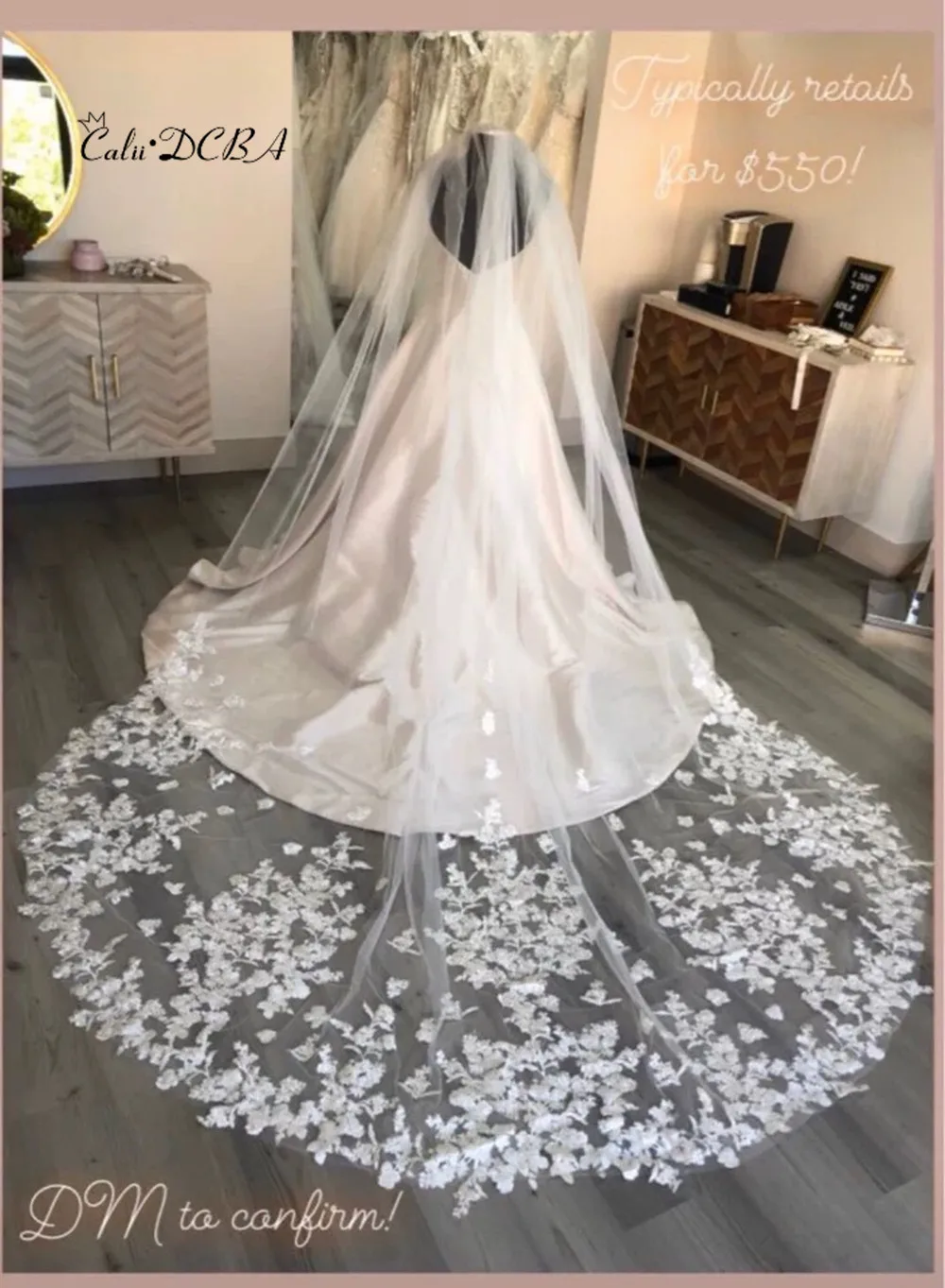 БелаяБлестящая Фата с длинными кружевными краями, роскошная Фата в виде цветов, длина с расческой, 45 метров, Женская Фата