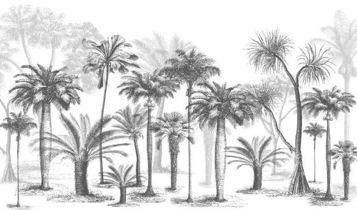 Фотообои на заказ, рисунок черно-белых тропических лесов, кокосовых...