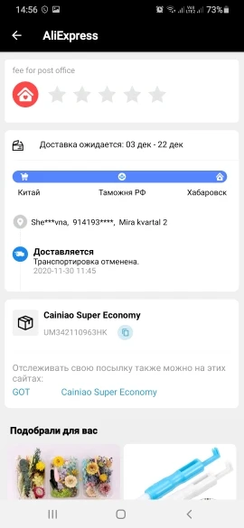 Страна: FR Color: SH-0032 Доставка: Cainiao Super Economy Global 07.12.2020