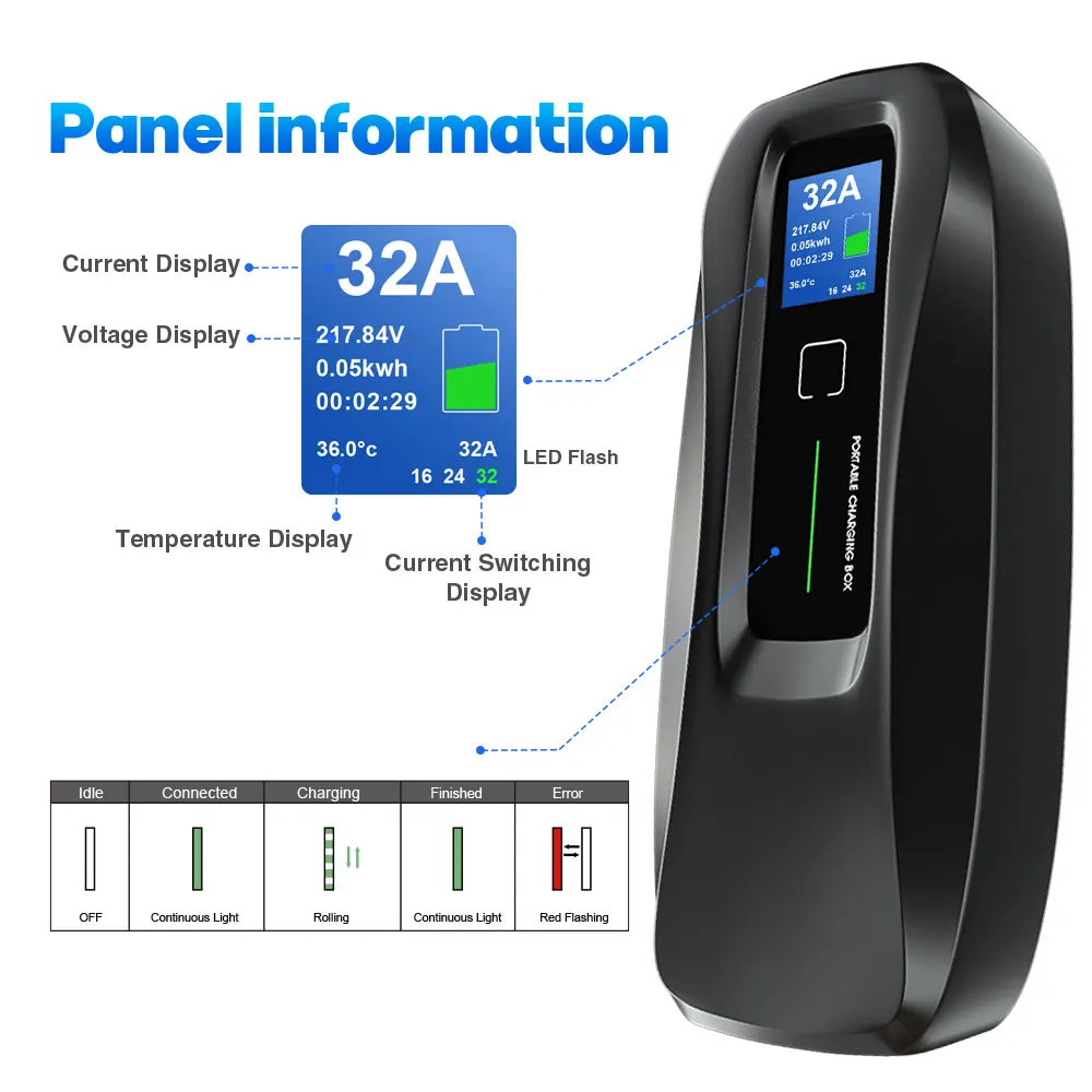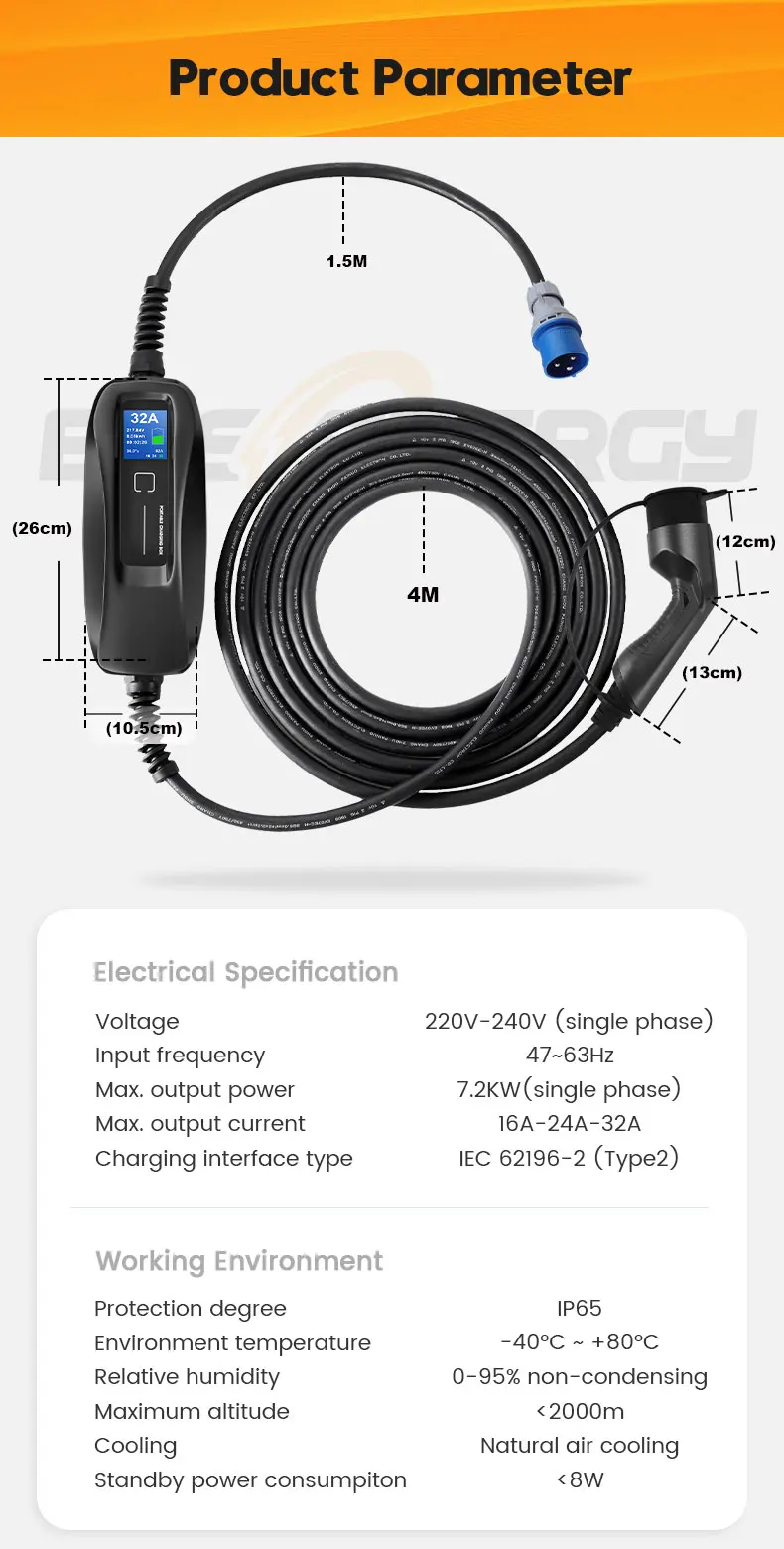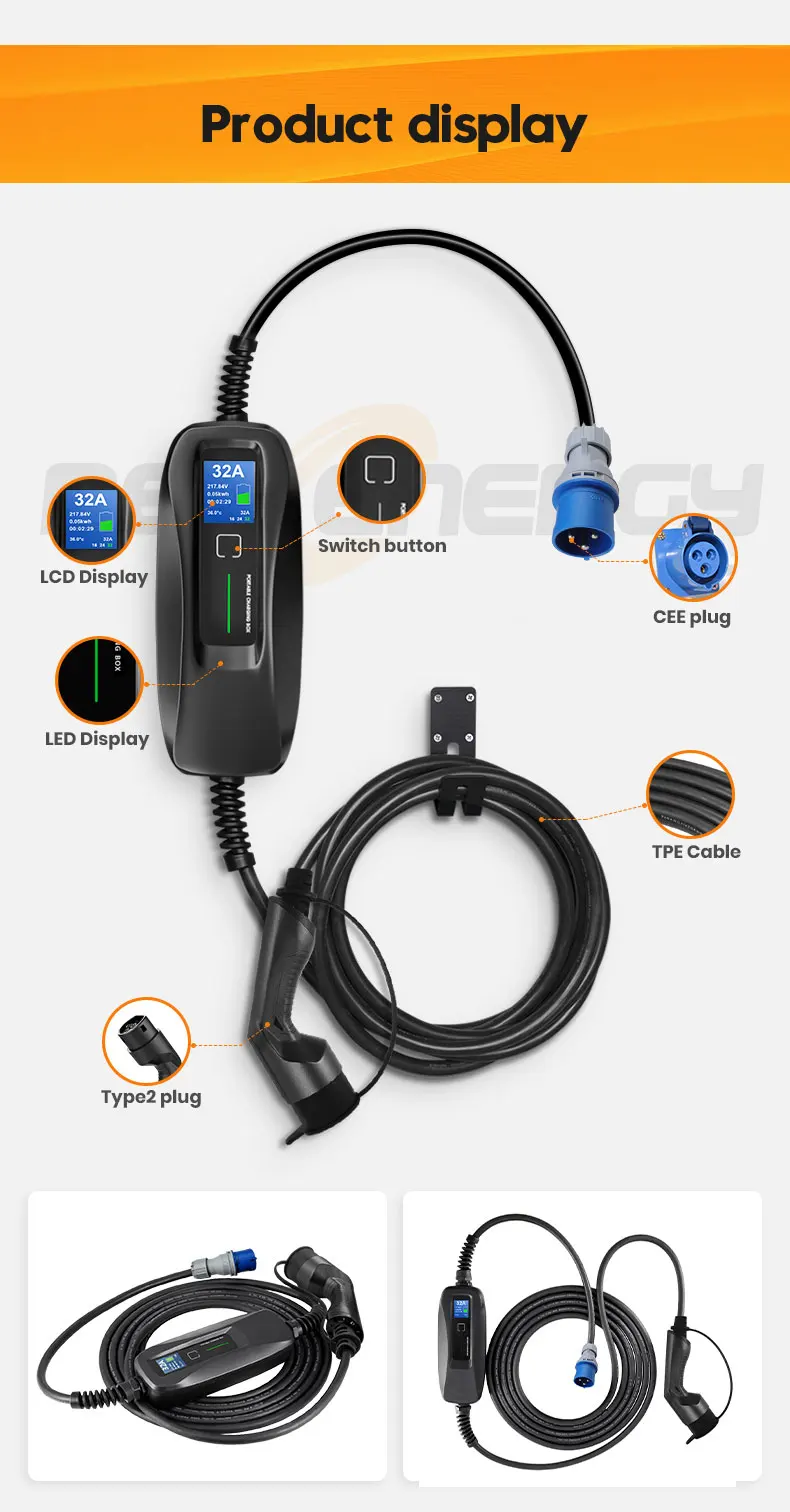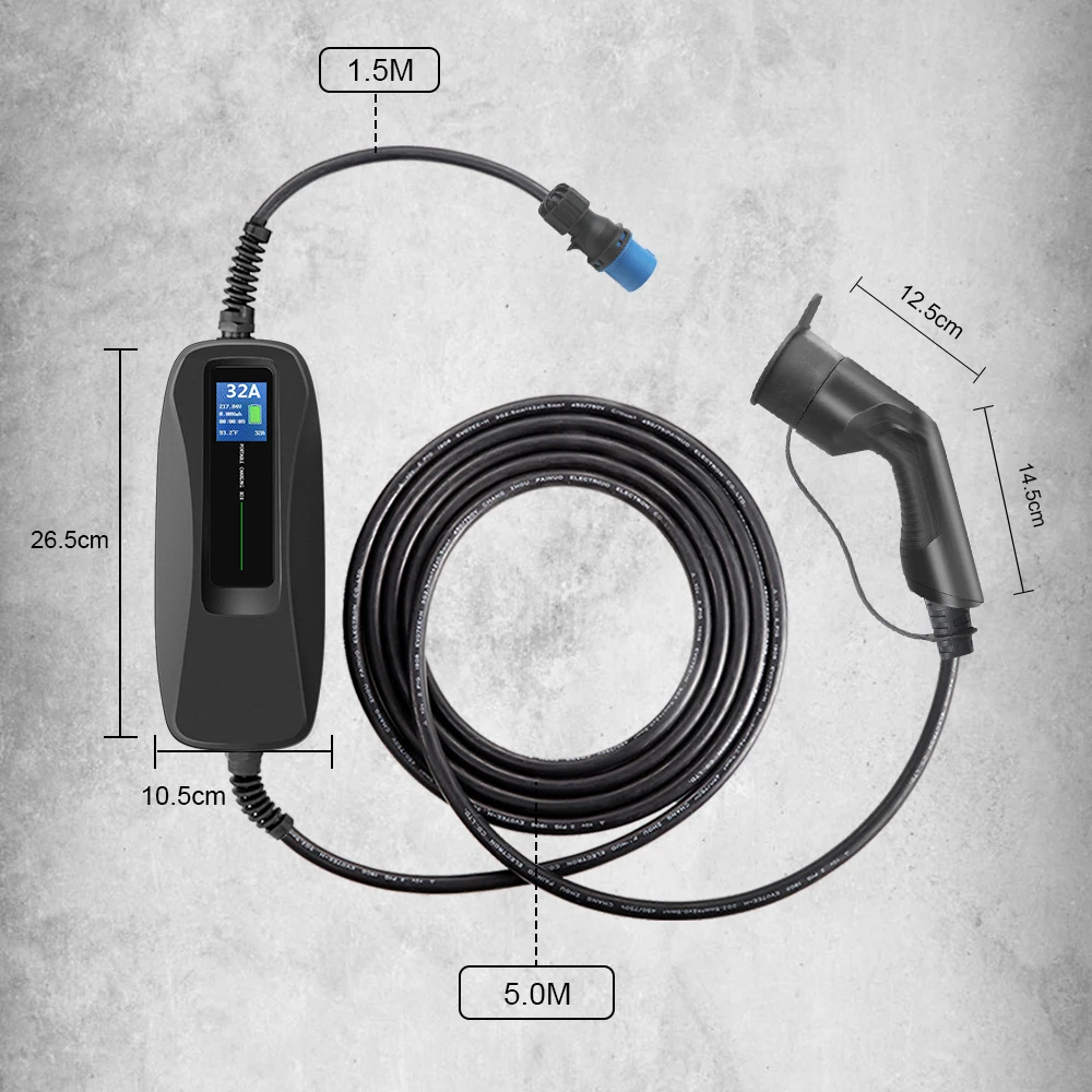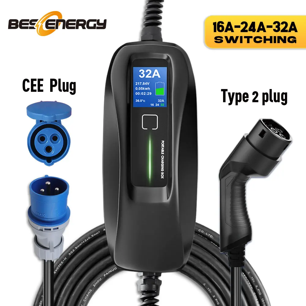Зарядное устройство для электромобиля EV type 2, зарядное устройство 7 кВт, переключатель тока 162432A, портативная зарядная коробка, вилка CEE 220 В IEC 62196-2 6 м