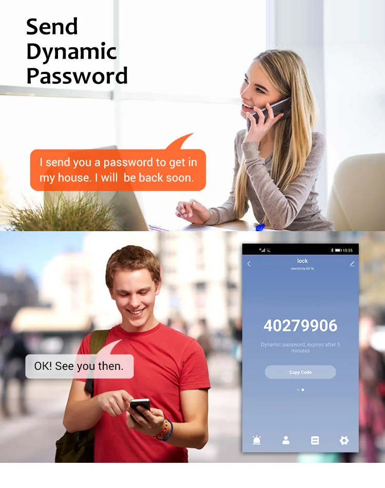 Поддерживается приложением TuyaПриложение Tuya-это приложение smart lock, его несколько функций всегда удовлетворяют вашим требованиям● Удаленно отправляйте код доступа● Управление отпечатком пальца, код доступа● Просмотр журналов доступа● Откройте блокировку с помощью приложения удаленно или почти.● Проверьте запись будильника. . И т. Д.