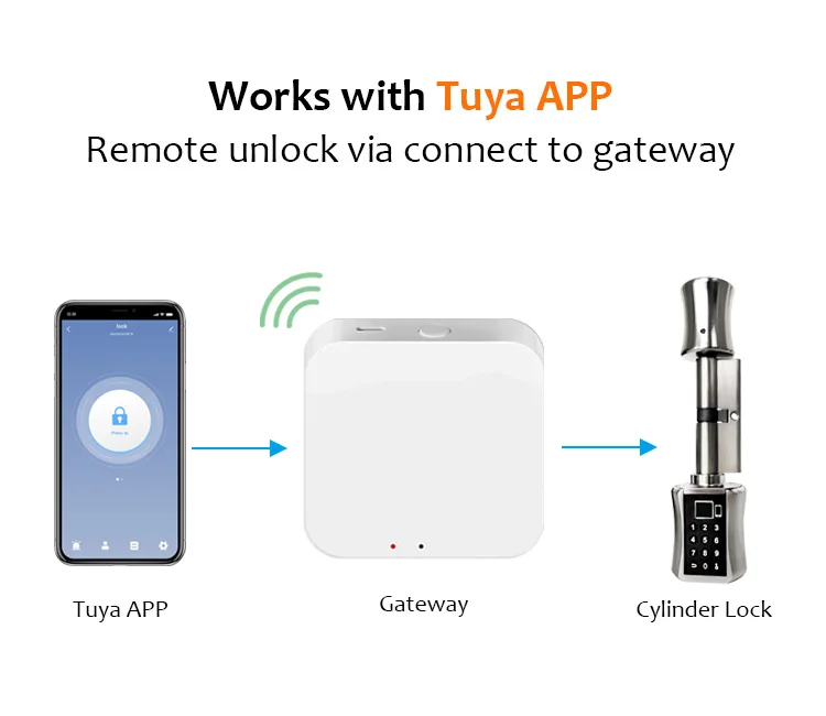 С CatchFace шлюзом, замок может быть подключен к Wifi. Вы можете разблокировать дверь удаленно.Пожалуйста, обратите внимание: шлюз не включен, пожалуйста, заказывайте его индивидуально.