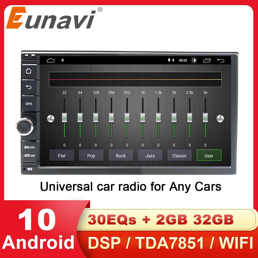 Универсальный Автомобильный мультимедийный плеер Eunavi Two, 2 Din, 7 дюймов, Android 10, радио, стерео, GPS-навигация, DSP TDA7851, 4G, USB, Wi-Fi, без Dvd