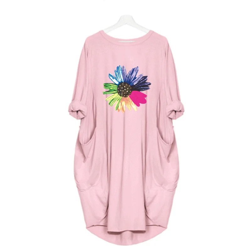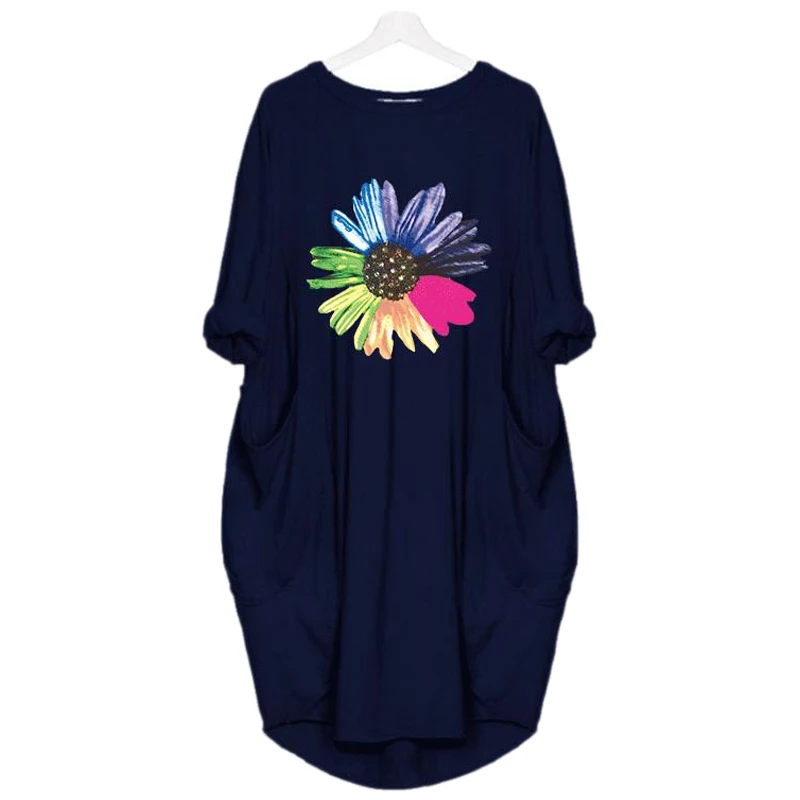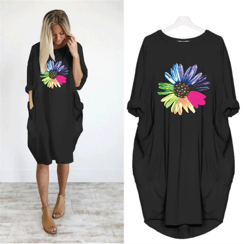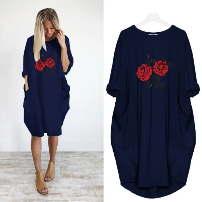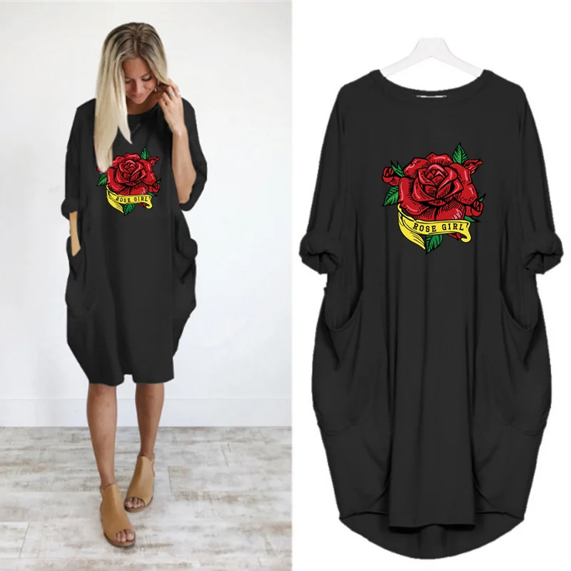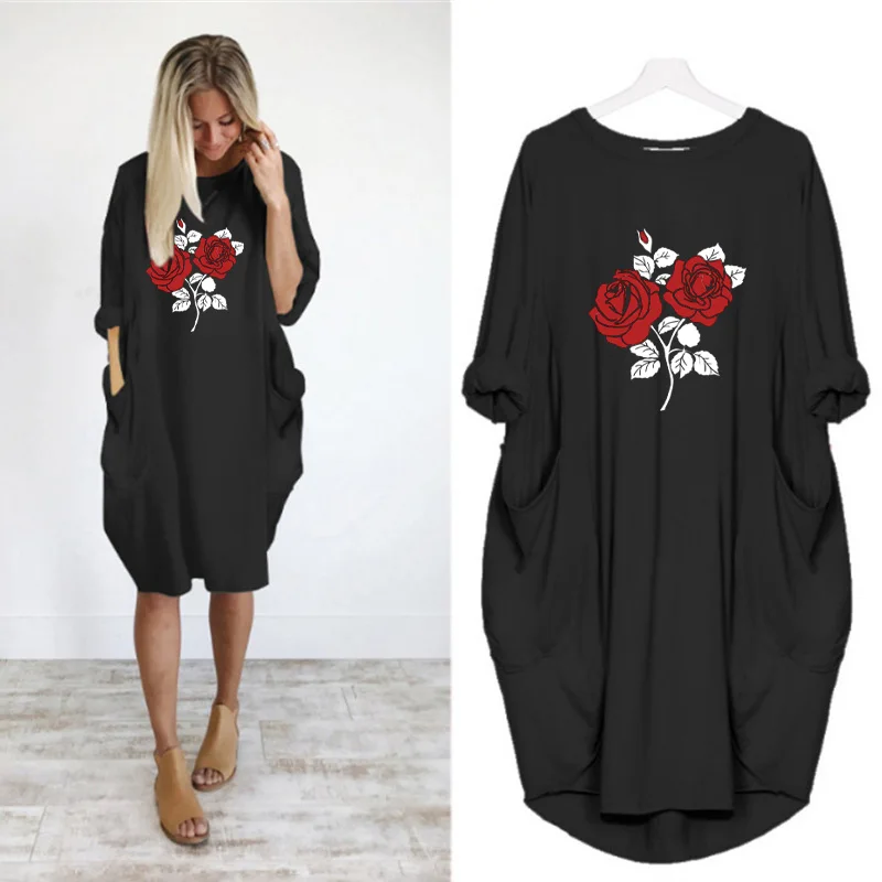 Осеннее платье, женская Свободная одежда с цветочным принтом и карманами, праздничные милые платья для женщин, романтичные черные и красные Сарафаны