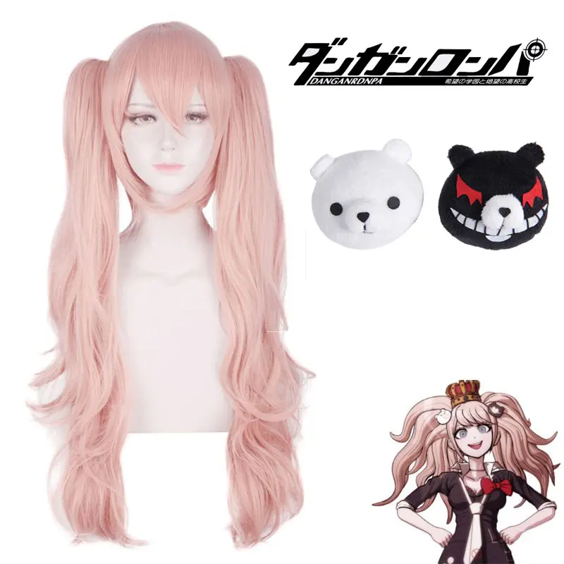 Аниме Danganronpa джунко эношима длинный хвост парик с заколки с медведем аксессуары к костюму для Косплей Dangan Ronpa женский парик на Хэллоуин