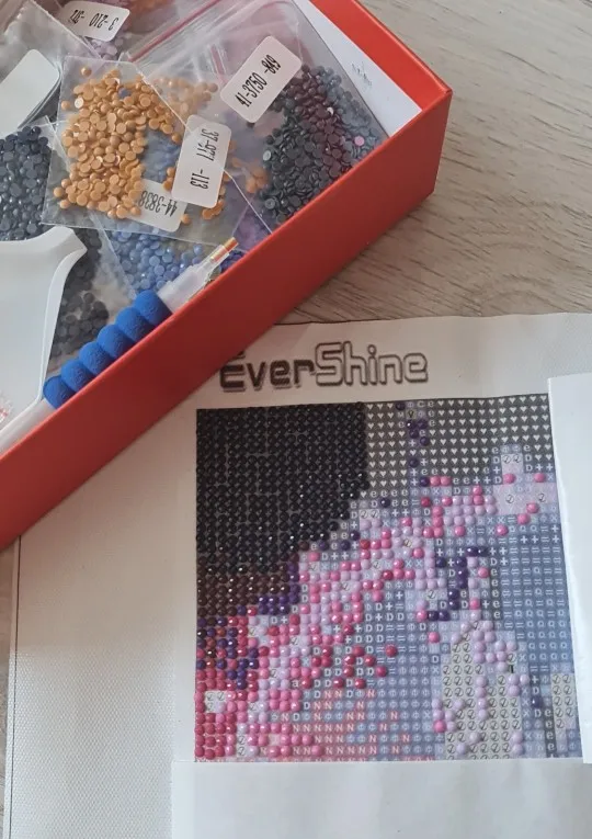 Изображение было сделано гораздо раньше, чем указано. Принт супер, камни в комплекте и очень красивые цвета. Упаковка также была без дефектов, и было очень много аксессуаров. Я очень доволен