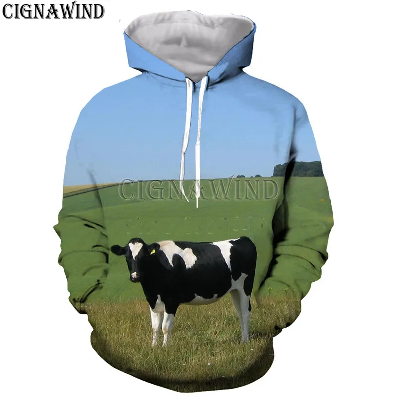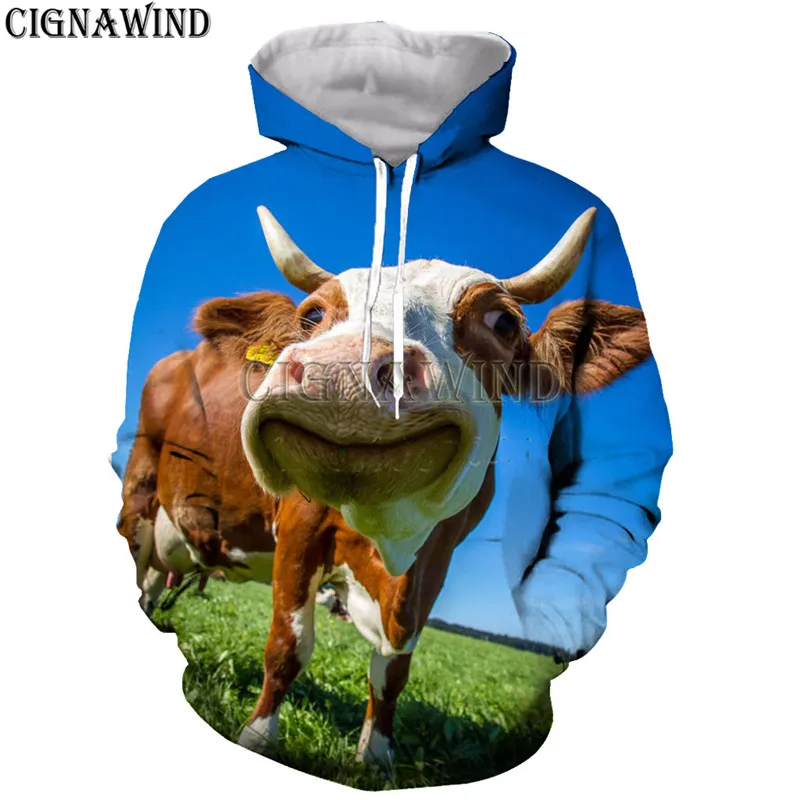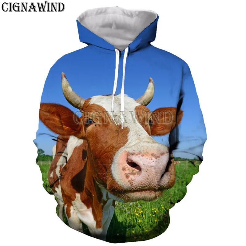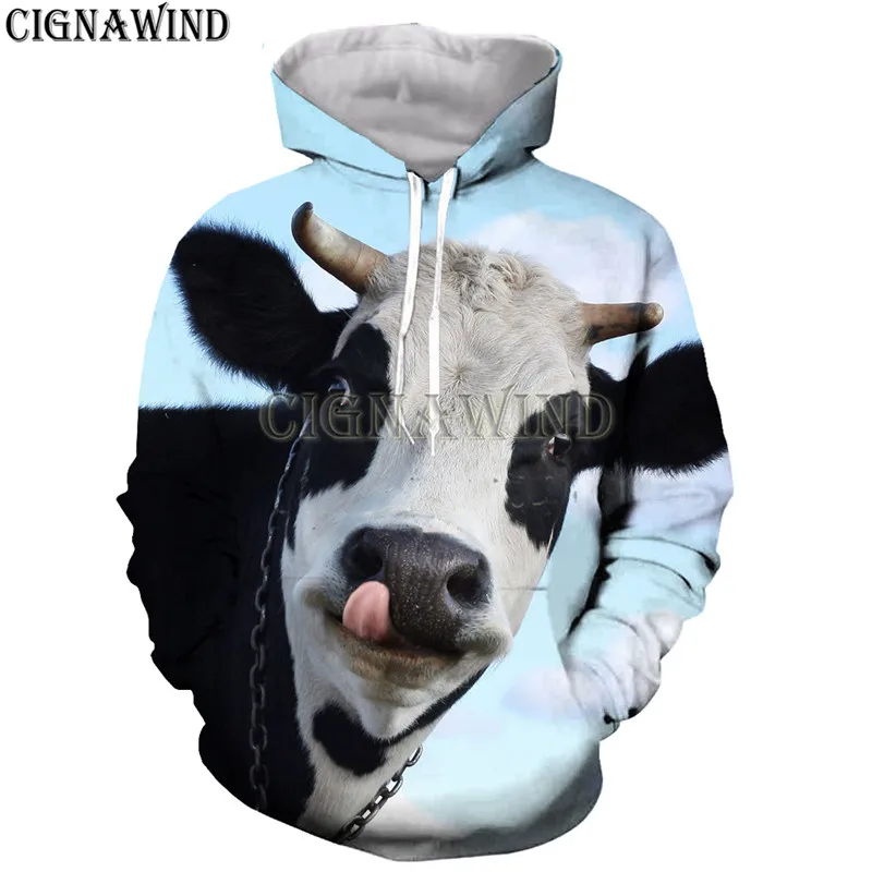 Толстовка с капюшоном для мужчин и женщин, дизайнерский свитшот с забавным 3D рисунком коровы, Повседневная Уличная одежда в стиле Харадзюку