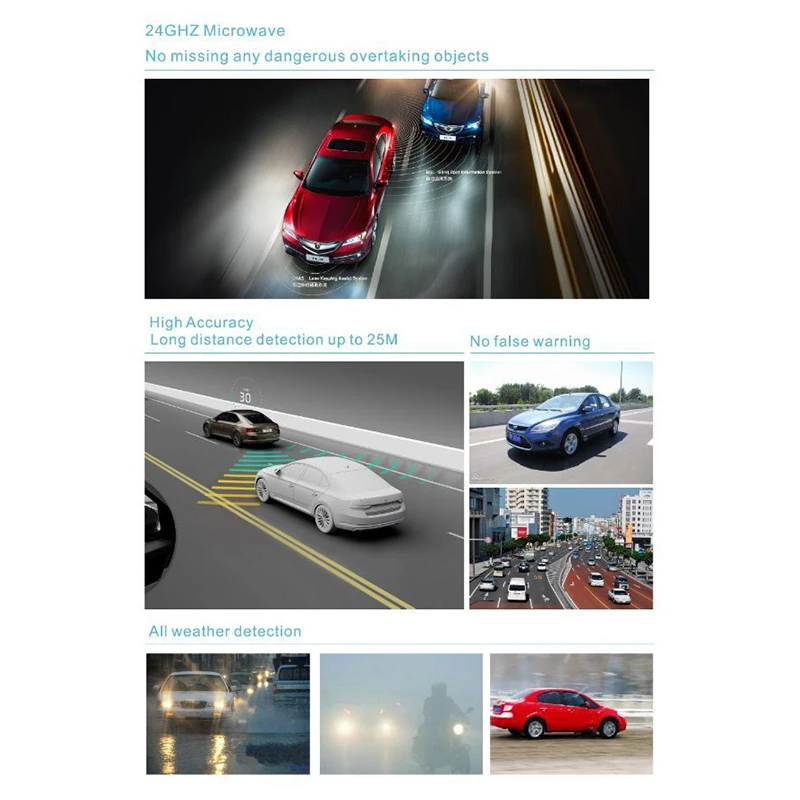 Когда скорость автомобиля составляет более 30 км/ч, движущиеся объекты приближаются в районе слепых пятен на 25 метров, и скорость быстрее, чем наши собственные автомобили.