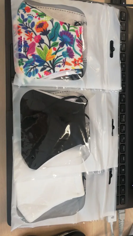 Маски довольно паршивого качества, подкладка видна с лицевой стороны, местами торчат нитки, к носу не прилегают. Заказывала 4 маски и комплект фильтров, фильтры не пришли, по спору деньги не вернули. На Али со мной такое впервые, до этого деньги всегда возвращали без проблем, очень неприятно.