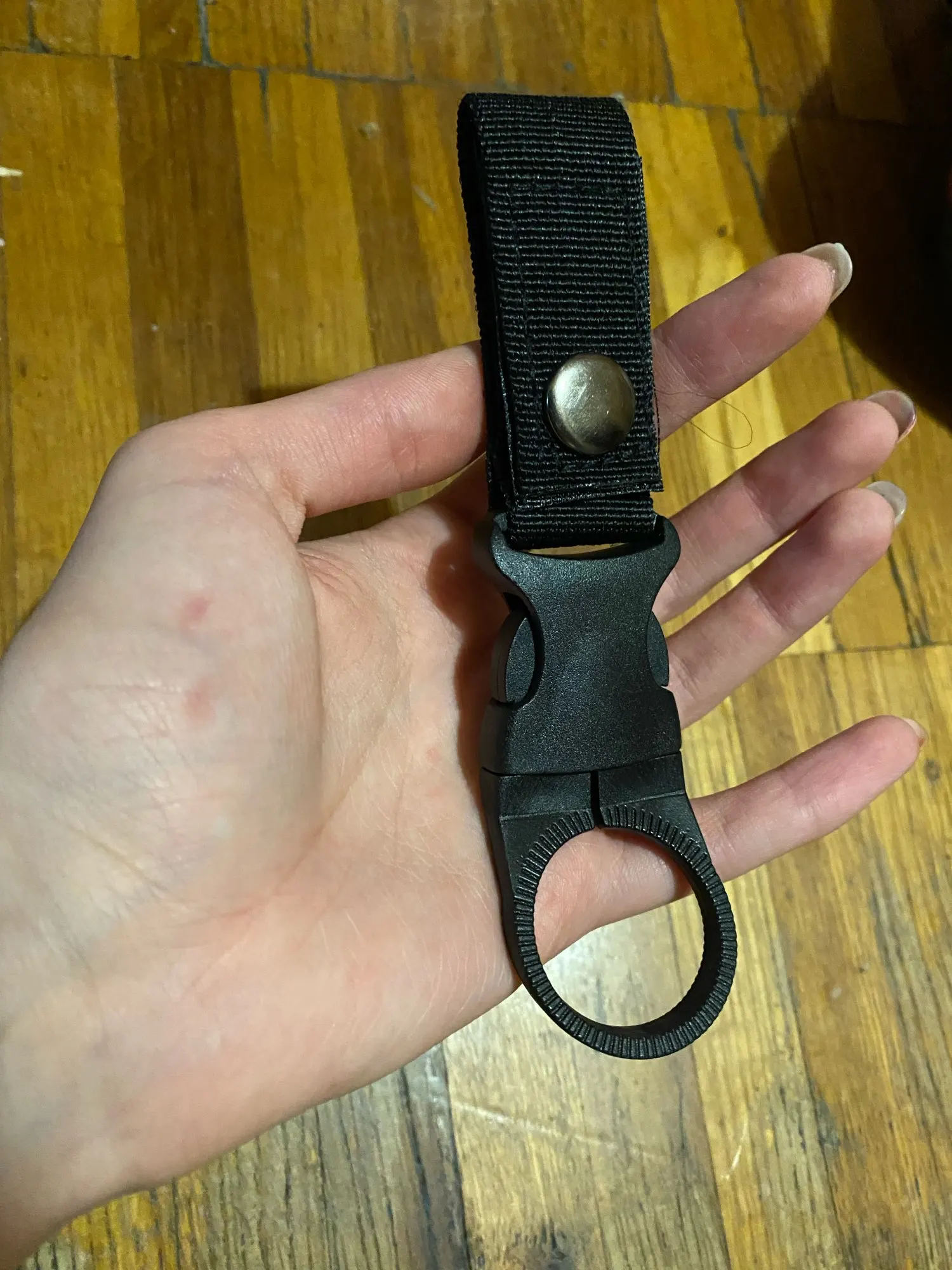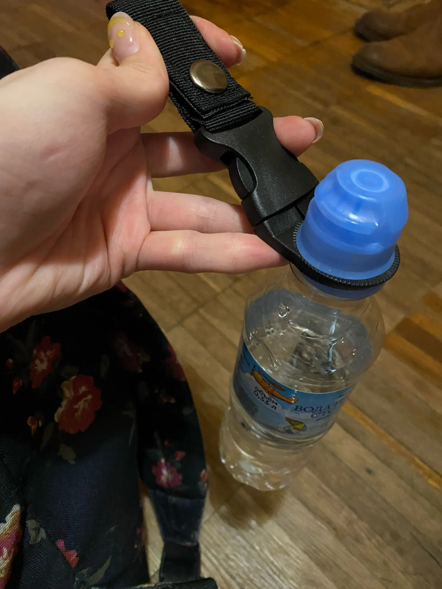 Очень комфортно в походах, можно быстро отстегнуть бутылку с водой и пристегнуть обратно! качество отличное! рекомендую!