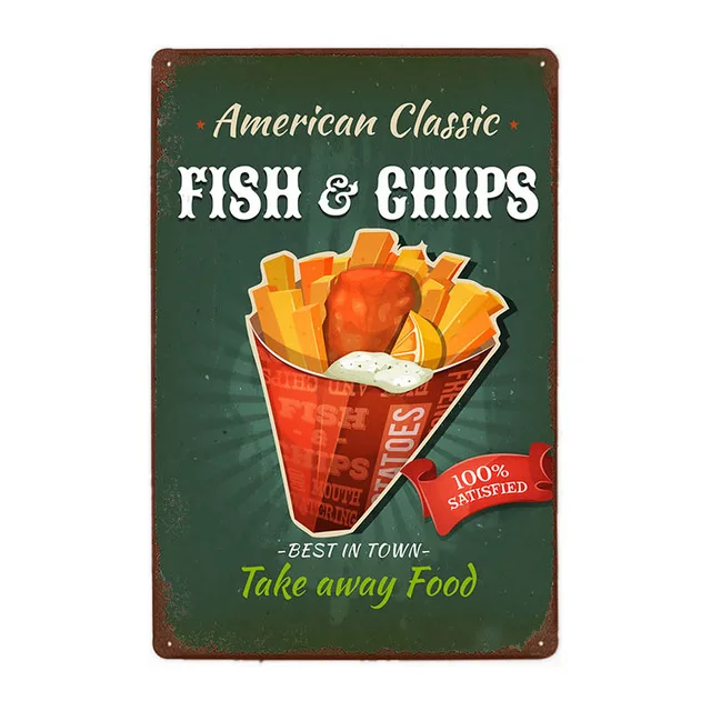 Ретро Металлические знаки с изображением гамбургеровпиццысушисакарт...