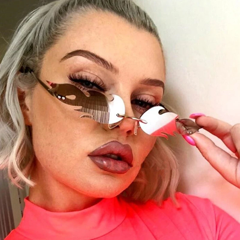 Солнцезащитные очки женские, металлические, зеркальные, без оправы, UV400