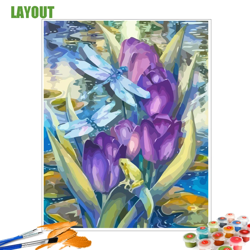 HUACAN живопись маслом по номерам животные ручная роспись картины рисование на холсте DIY Раскраска по номерам наборы стрекозы домашний декор
