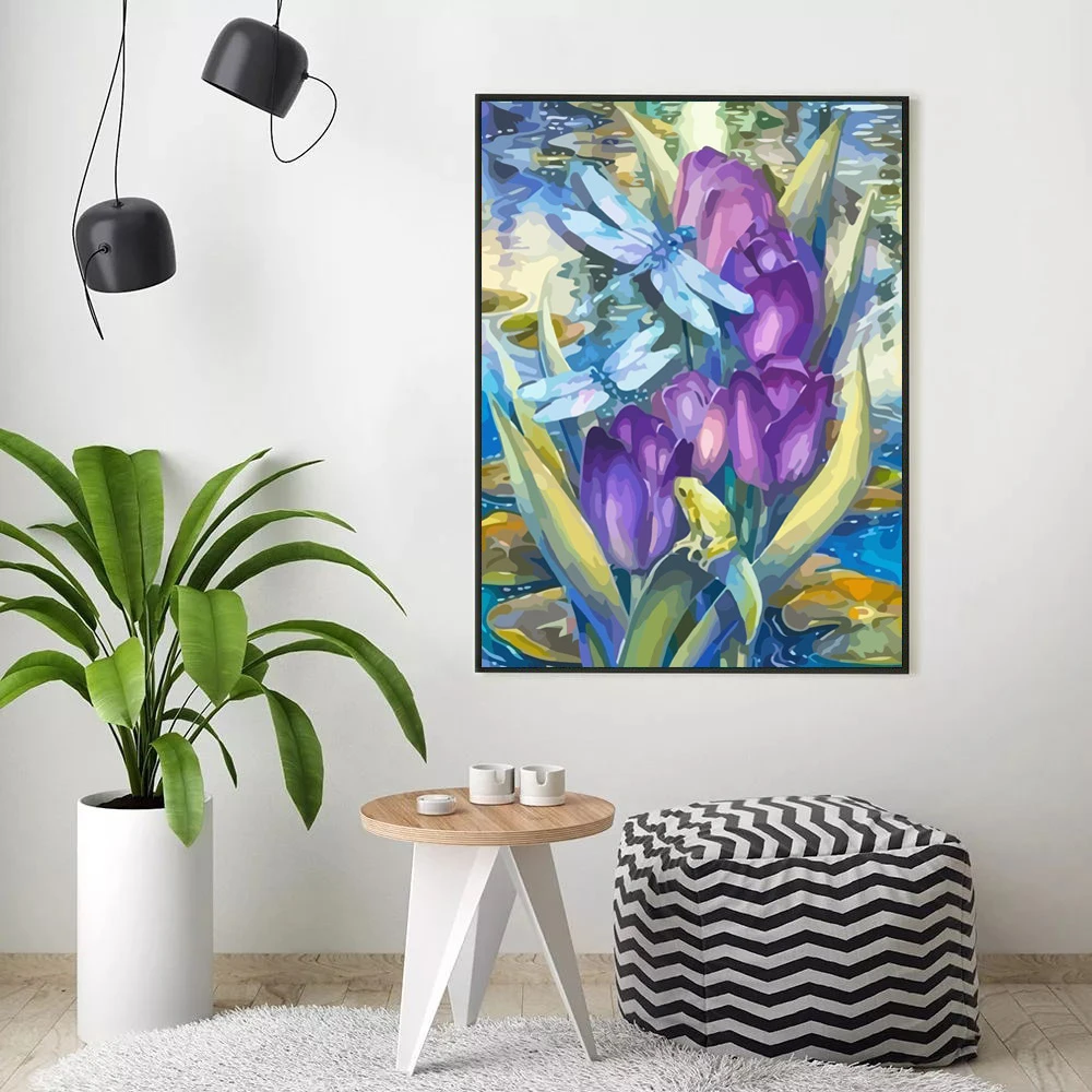 Картина по номерам HUACAN, сиреневый рисунок на холсте, картины по ...