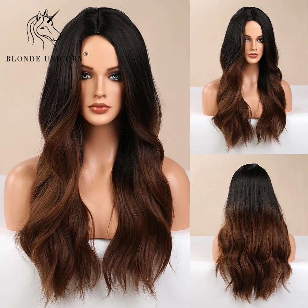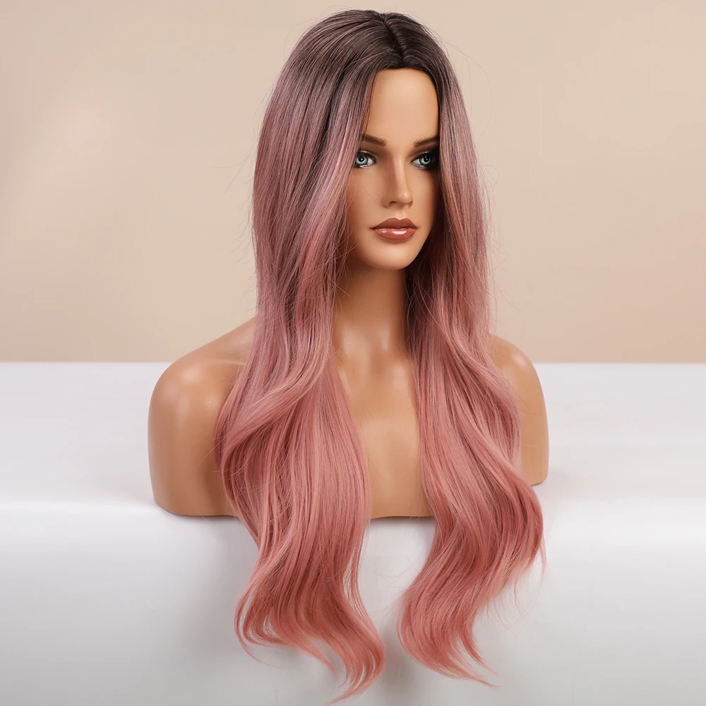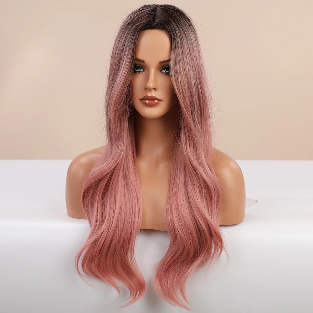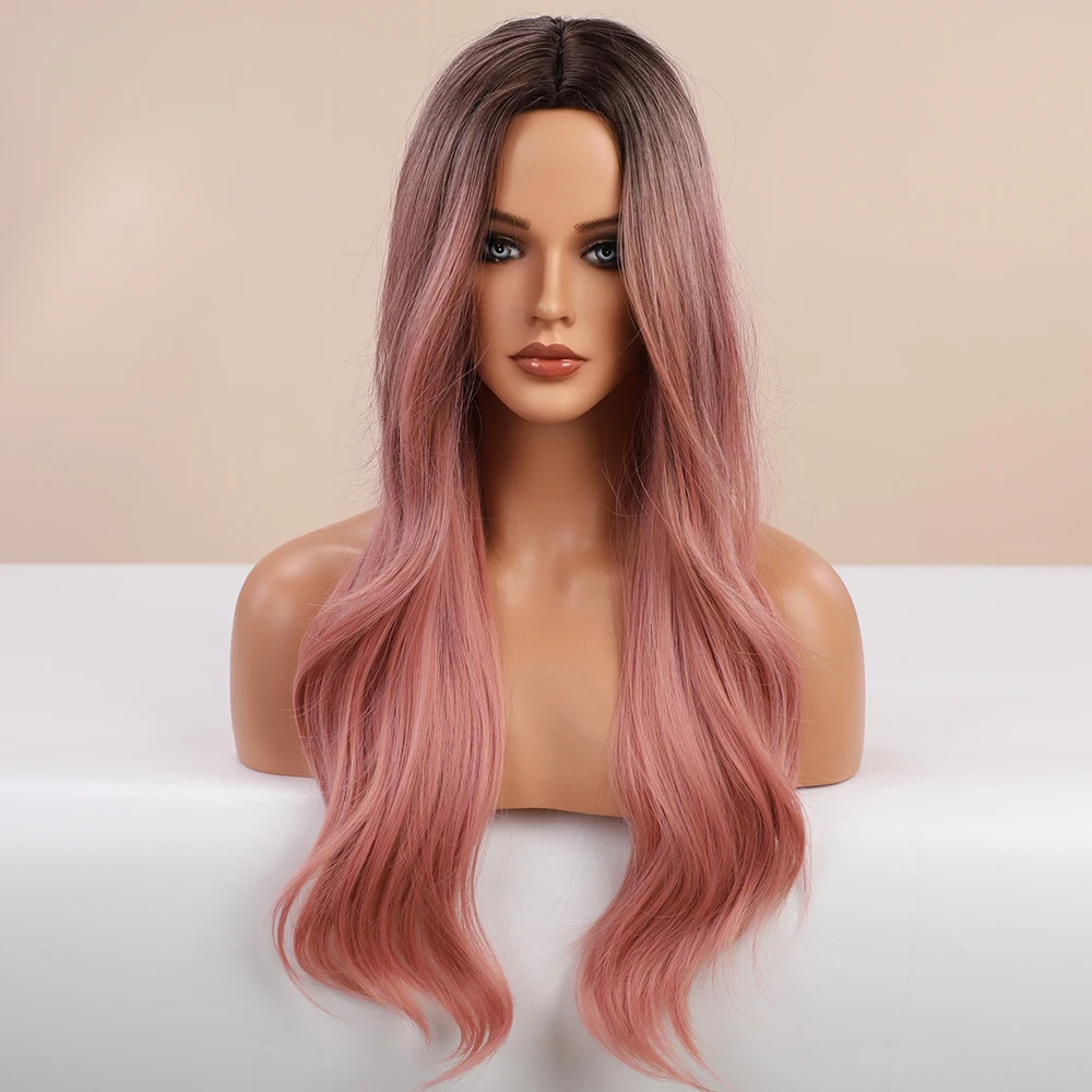Светлый Единорог, Синтетические длинные волнистые темные корни, Омбре, розовые парики для косплея для черных, белых женщин, цветные волосы, термостойкие