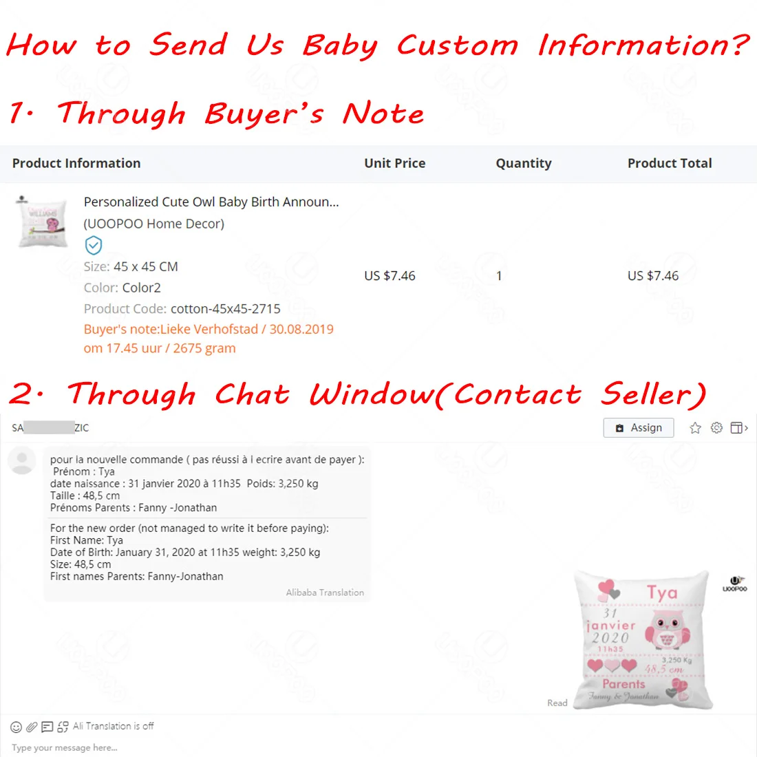 How to Send Us The Custom InformationThrough Email or Order Comments